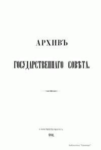 В 1863 г. по высочайшему повелению Александра II началась работа над систематическим описанием архива Государственного совета и Государственной канцелярии. Эта работа была поручена сенатору, историку-юристу Н. В. Калачову и советнику И. А. Чистовичу под высшим наблюдением председателя Государственного совета Д. Н. Блудова. Под их редактурой вышли в свет три тома (восемь книг) «Архива государственного совета»: две части первого тома, охватывающие период с 1768 по 1796 г. и заключающие в себе протоколы Совета, учрежденного императрицей Екатериной II; две части четвертого тома, содержащие журналы Государственного совета по Департаменту законов с 1810 по 1825 г.; две части третьего тома, в которые вошли протоколы Совета при Высочайшем дворе с 1801 по 1810 г.; две части четвертого тома, включающие журналы Государственного совета по Департаменту экономии с 1810 по 1825 г. Со смертью главного редактора издания сенатора Калачова публикация архива была приостановлена. С учетом исторической ценности данного труда, в 1886 г. последовало высочайшее повеление продолжить работу над изданием. Его составление и редактирование было возложено на члена Археографической комиссии Министерства народного просвещения Г. Ф. Штендмана, помощника статс-секретаря Государственного совета П. М. фон Кауфмана и др. В продолжение работы над изданием были опубликованы: третья часть четвертого тома, содержащая материалы по гражданскому отделению Департамента законов (1818–1820); пять частей четвертого тома, в который вошли журналы по Департаменту гражданских и духовных дел (1810 – 19 ноября 1825 г.); первая часть пятого тома, включающая журналы по делам Департамента государственной экономии (20 ноября 1825 г. – 1826).