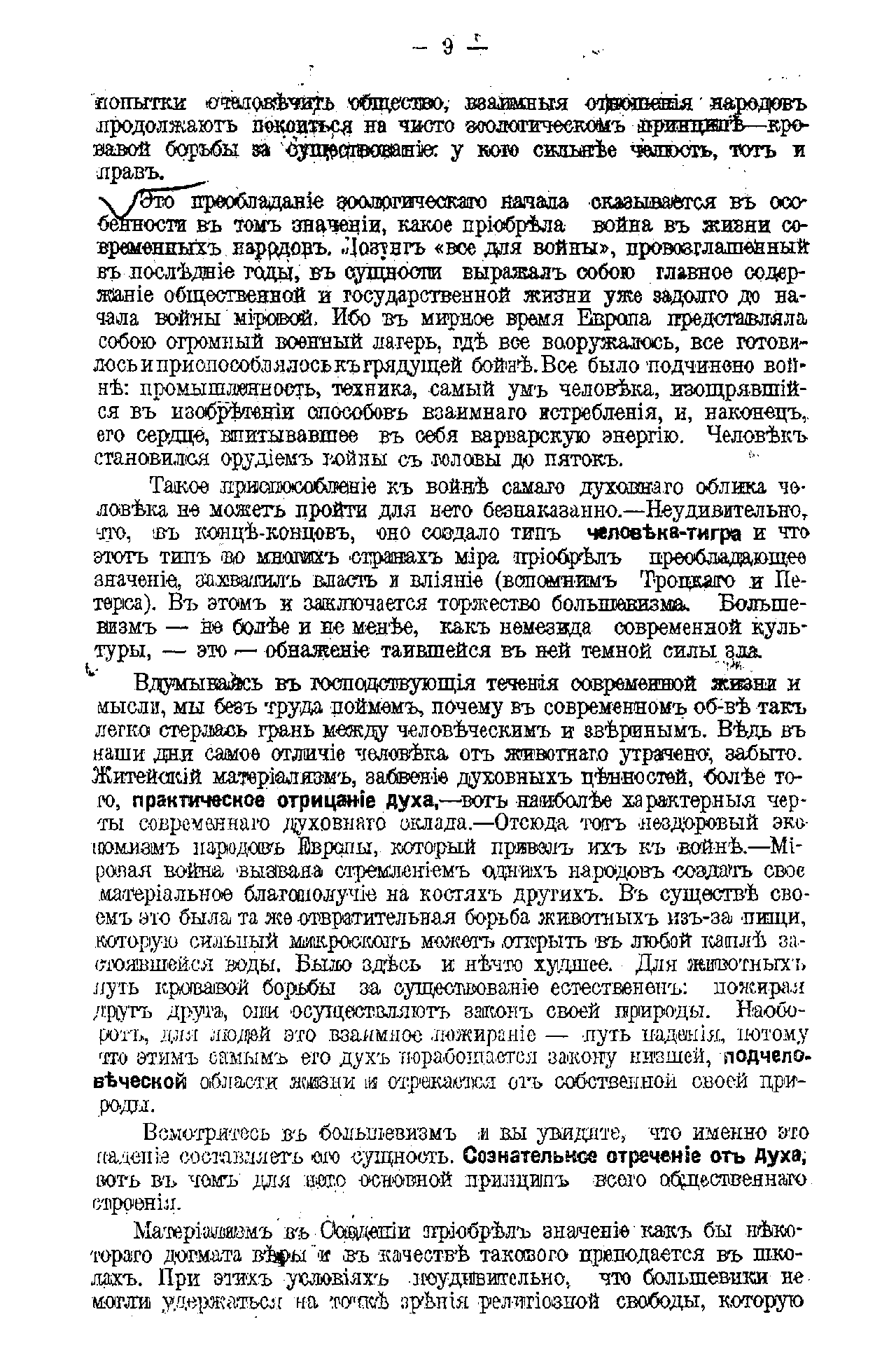 Автор книги стремится осмыслить настоящее (1919 год) и будущее России. Он учитывает итоги европейской политики XIX века, результаты Первой мировой войны, революции 1917 года. В небольшой по объему работе обсуждается извечная проблема внутренних и внешних врагов страны, говорится о явных и скрытых причинах упадка и гибели империи, о взаимоотношениях народа и власти, масс и элит, о соотношении духовного и материального. Философ дает ответ на вопрос: что же восторжествует в мире – «звериное или человеческое»?