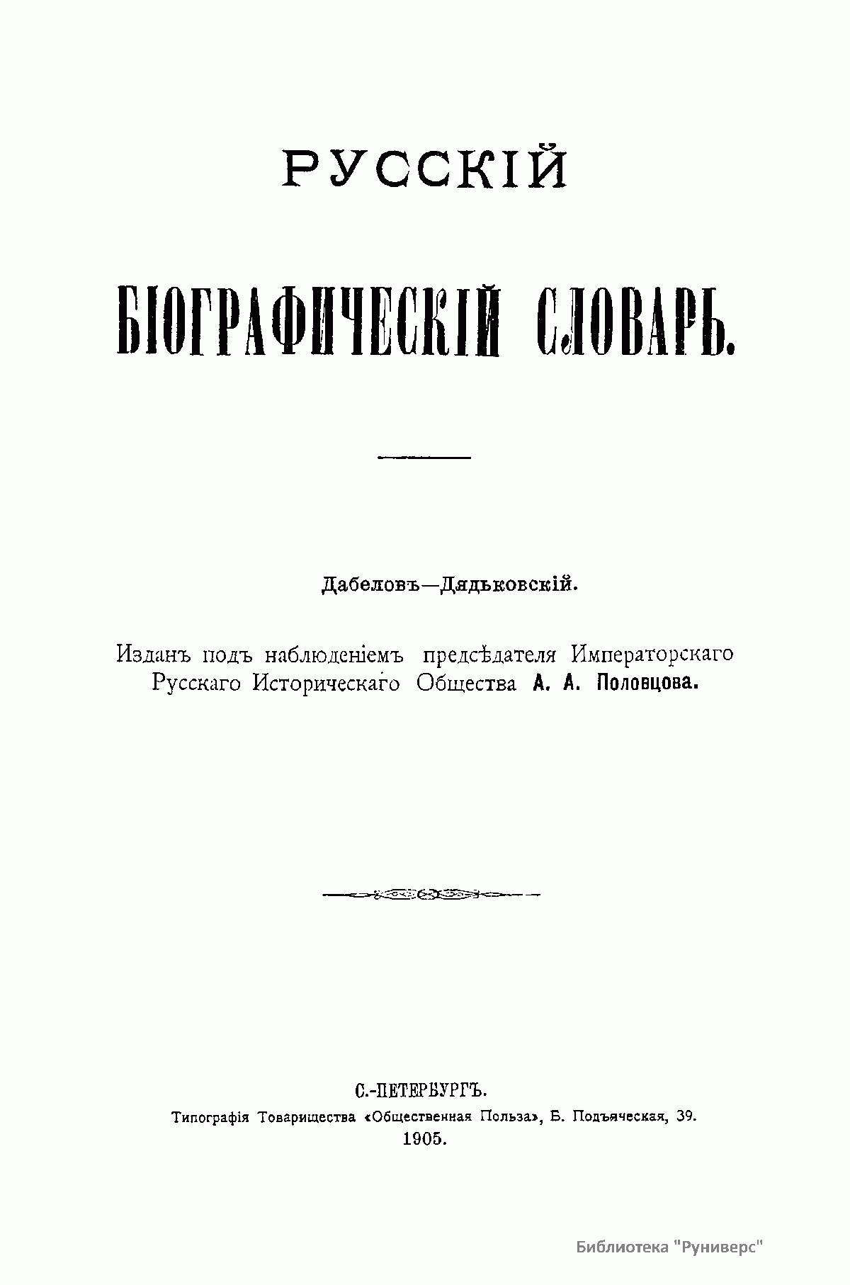 Русскiй бiографическiй словарь. Томъ VI. Дабеловъ - Дядьковскiй