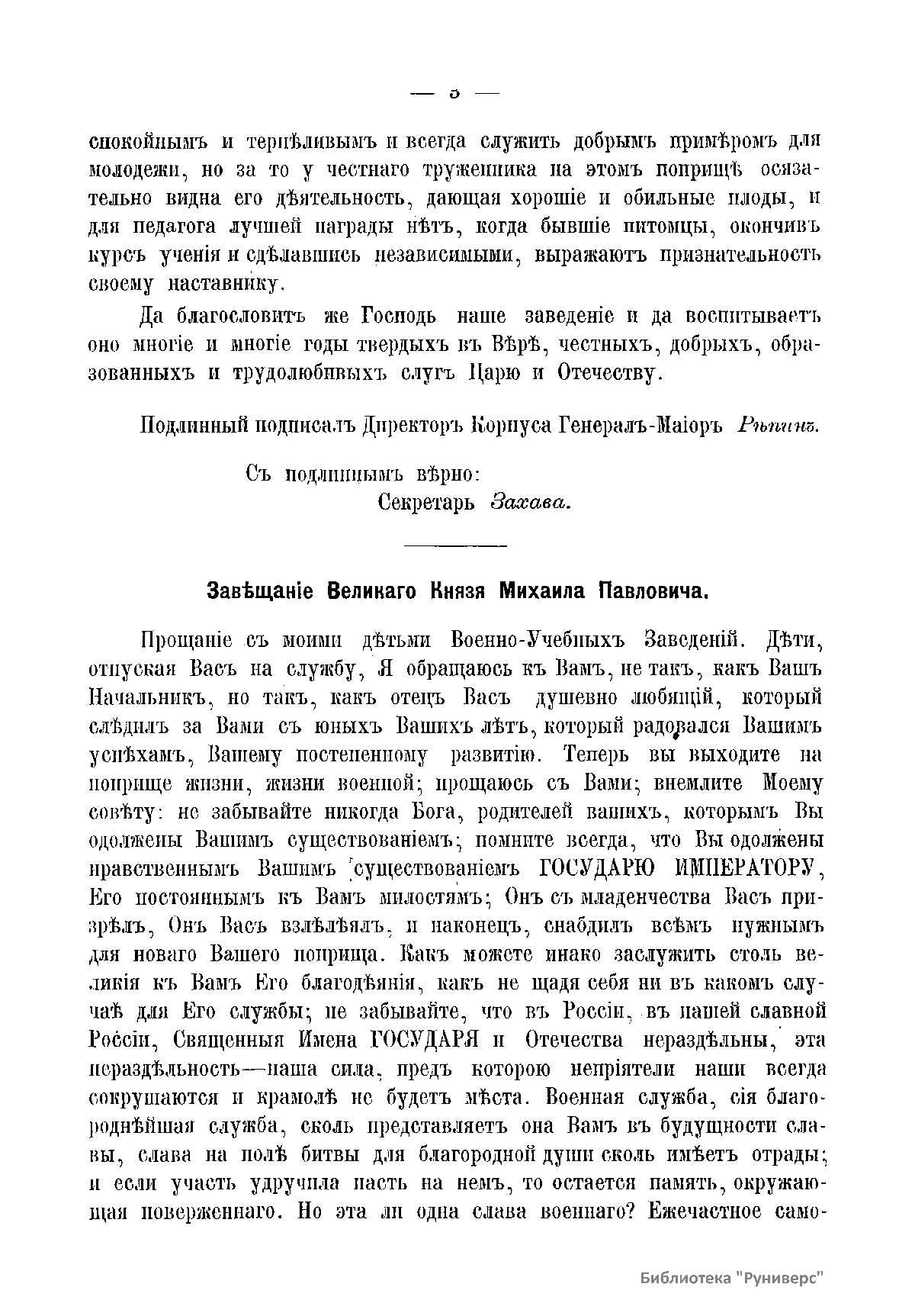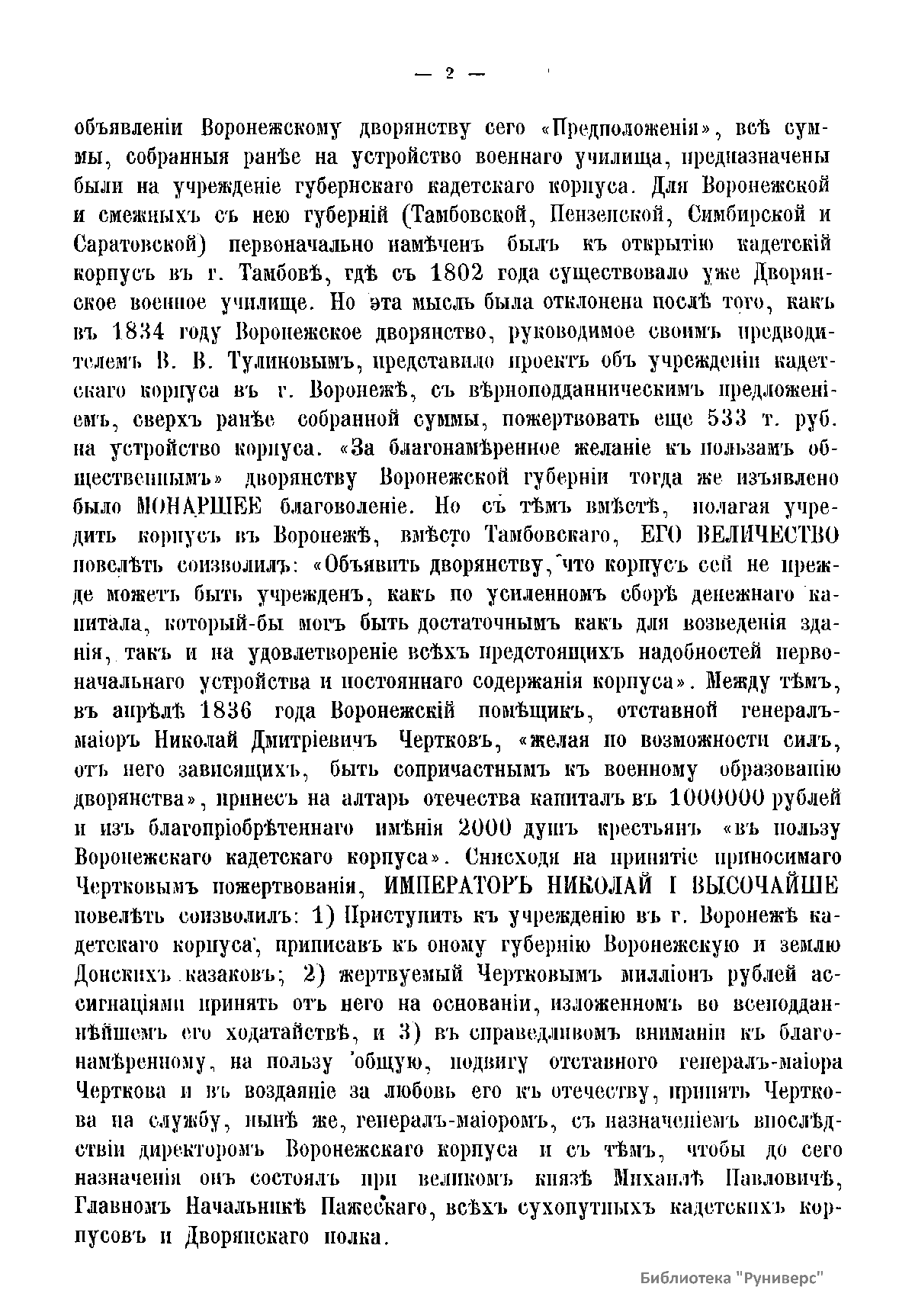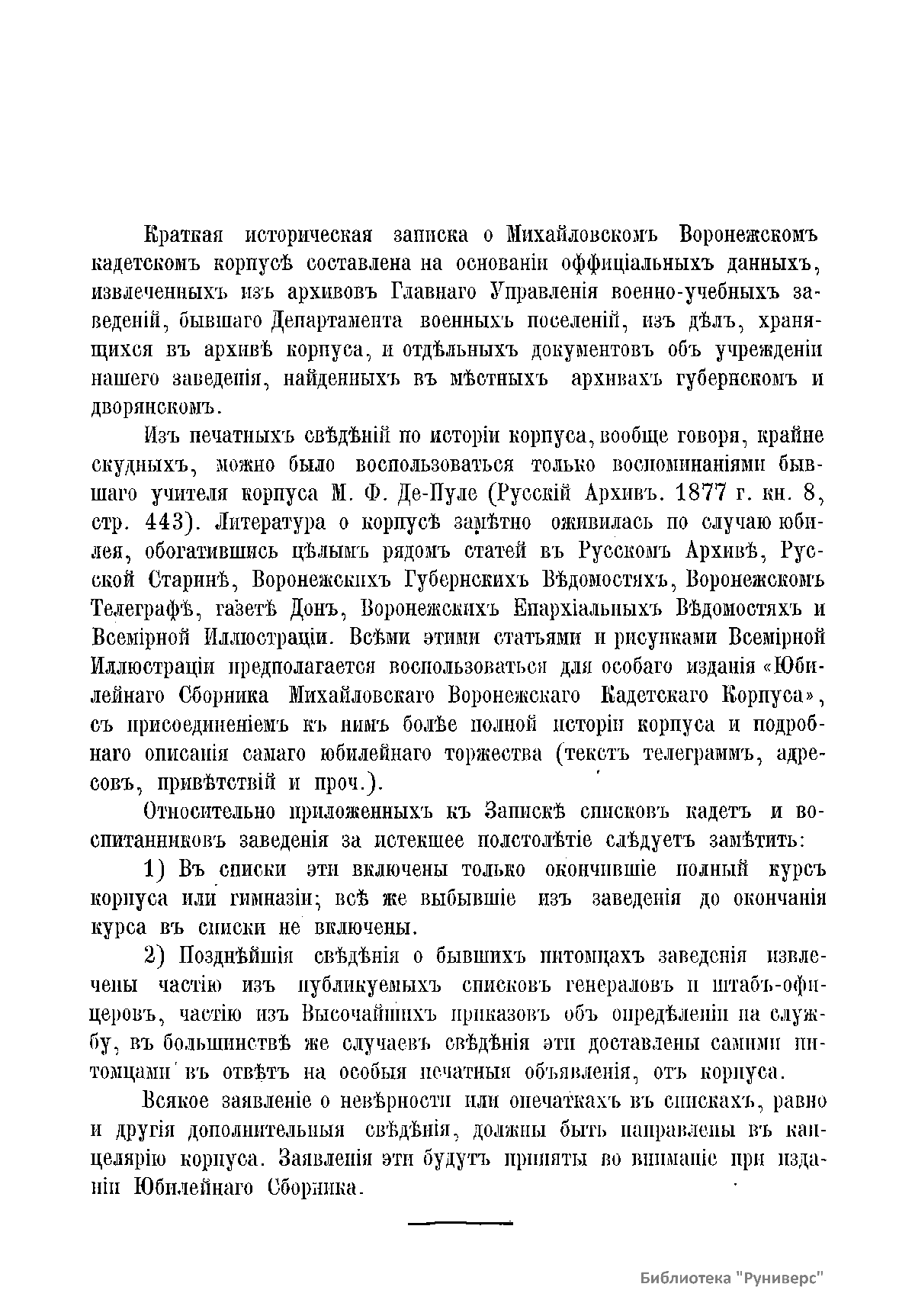Историческая записка о Михайловском Воронежском кадетском корпусе