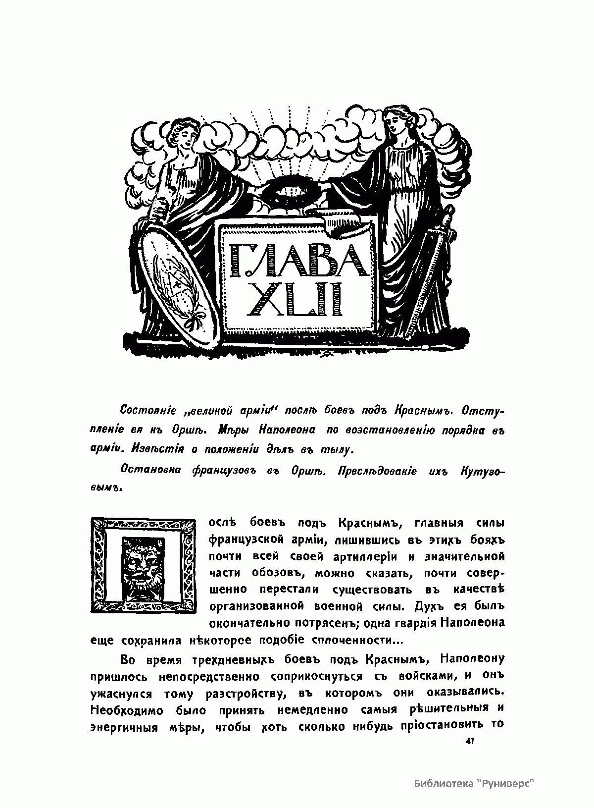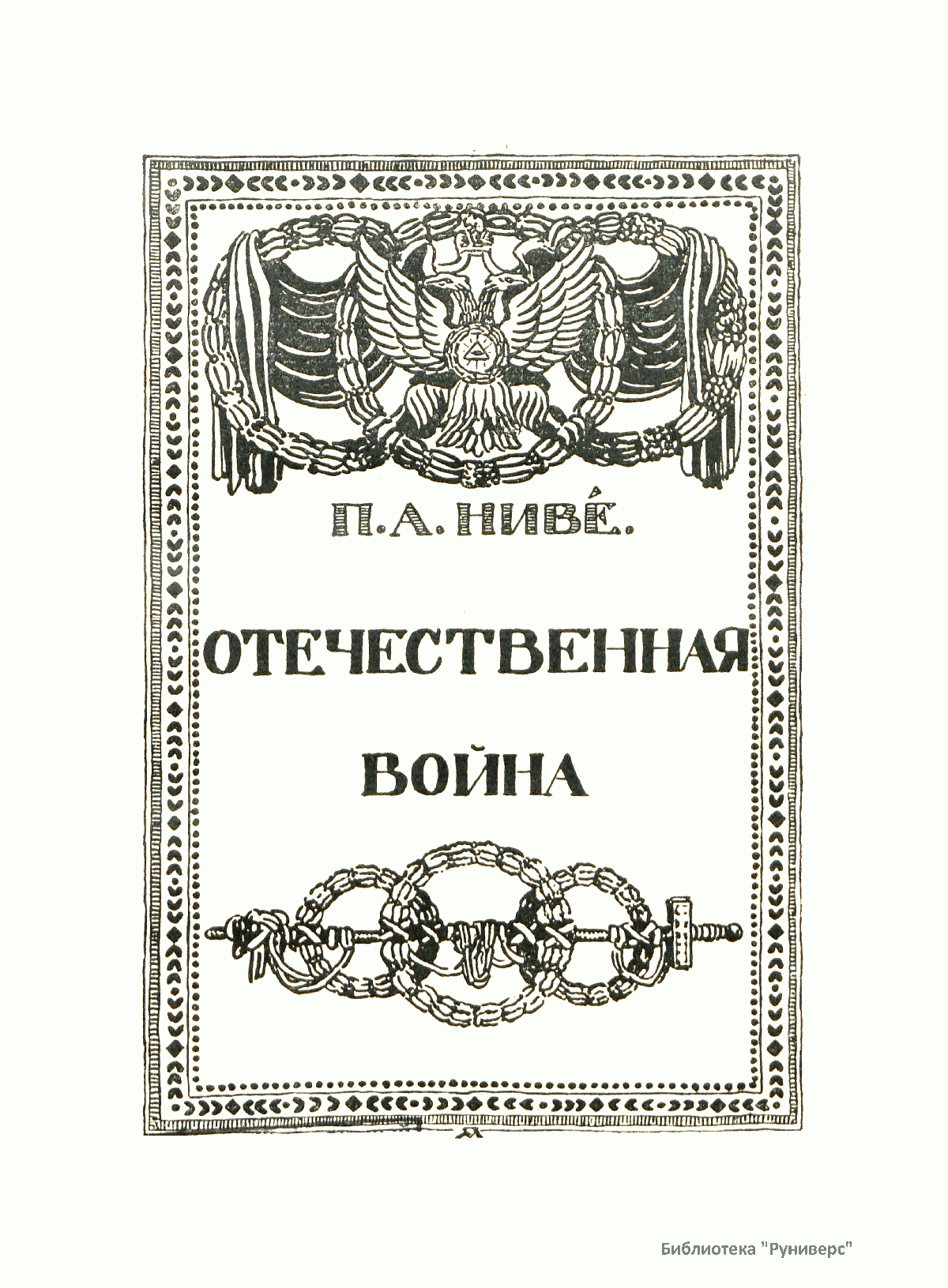 Книга военного историка, полковника Петра Андреевича Ниве «Отечественная война» является юбилейным изданием 1912 г., которое имело целью восстановить точную, во всех ее деталях историческую канву событий Отечественной войны 1812 г. Данное издание богато иллюстрировано, в нем представлены планы и карты всех крупных сражений «Русской кампании Наполеона».