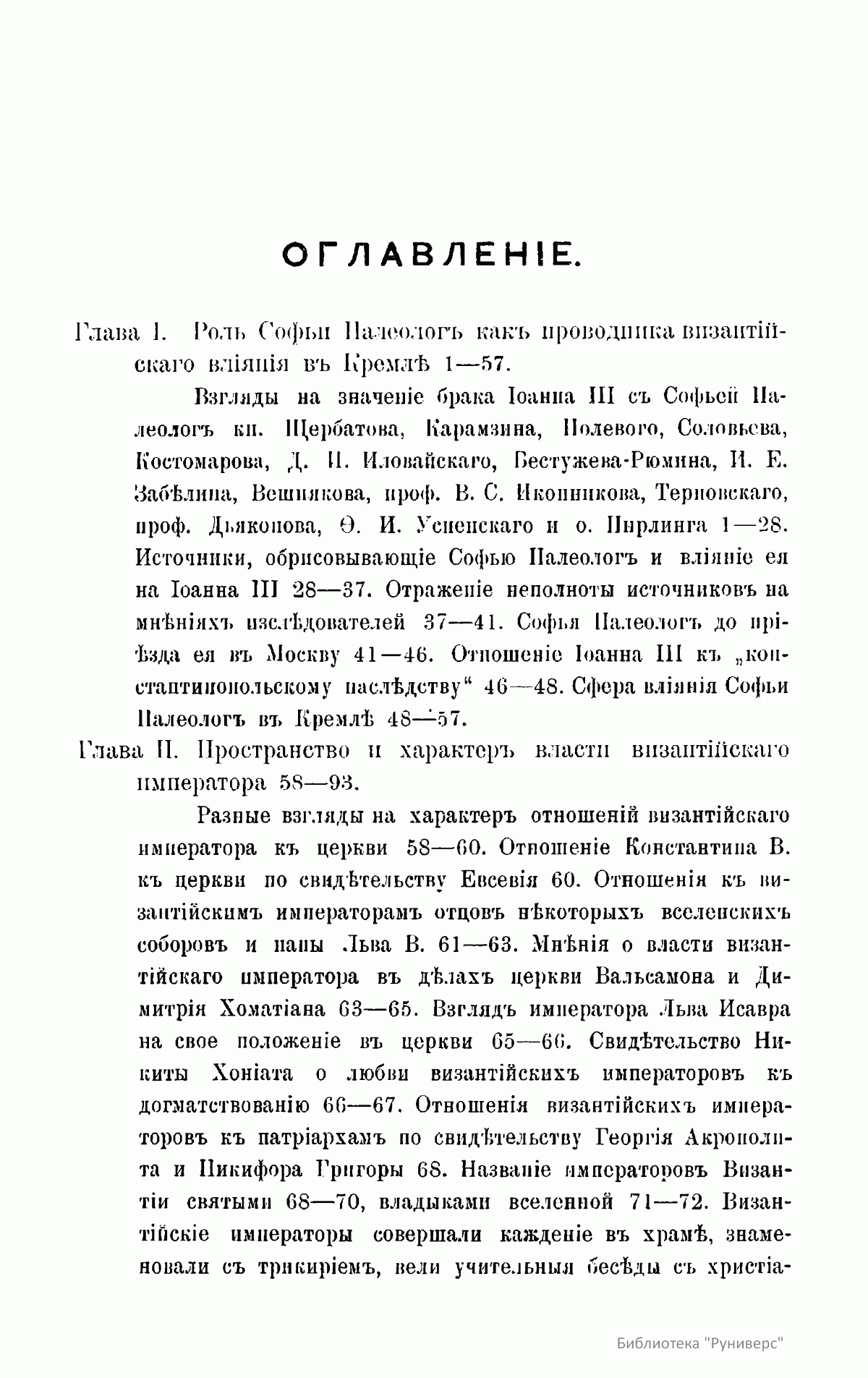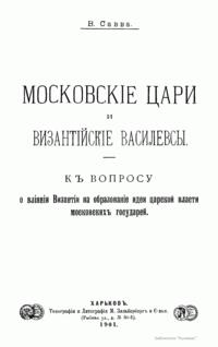 В настоящем издании рассматривается вопрос о влиянии Византии на образование идеи царской власти московских государей. Автор ставит перед собой цель внести посильную лепту в разрешение сложного и обширного вопроса о влиянии Византии на Русь. В 1888 году, когда истекало 900-летие со времени крещения Руси и более 900 лет со времени начала влияния Византии на Русь, известный византинист академик Ф. И. Успенский в своей речи «Русь и Византия в X веке» констатировал невозможность «составить себе понятие о количестве и качестве византийских влияний на Россию», пока не будет предпринят «ряд исследований по отдельным вопросам: о влиянии Византии на древнюю русскую литературу; о заимствованиях по части художественных идеалов, нашедших применение в искусстве; об обмене в области юридических понятий; в устройстве государственности; в домашнем быту и т. п.». Предлагаемый труд является одним из таких исследований. В книге говорится о роли Софьи Палеолог как проводнике византийского влияния в Кремле; о пространстве и характере власти византийского императора; о церковно-гражданских обрядах византийского двора сравнительно с такими же обрядами московского двора; о происхождении и развитии обряда венчания на царство московских государей; об обряде в неделю Ваий в Византии и на Руси; о московском посольском обряде; о доказательствах, представлявшихся московскими государями в пользу прав их на царский титул.