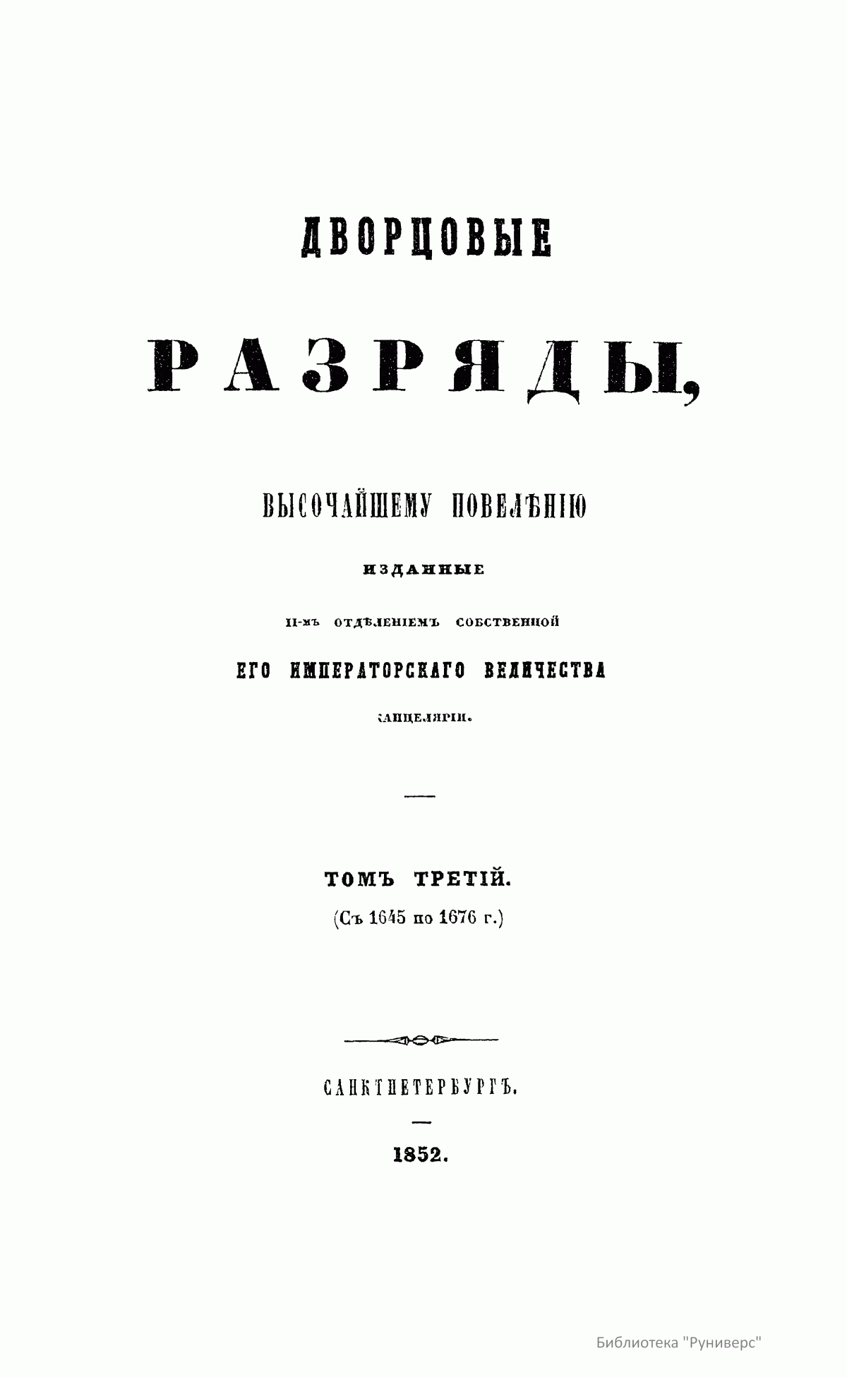 Дворцовые разряды. Томъ третiй. Съ 1645 по 1676 г.