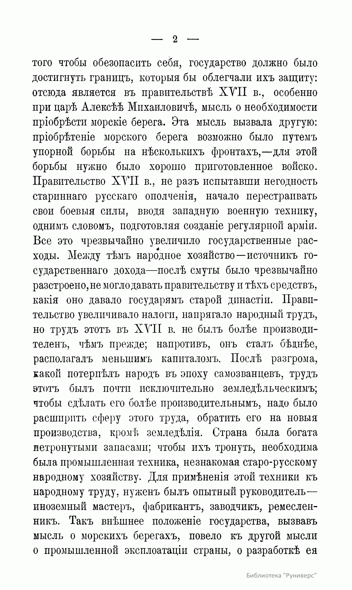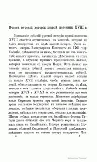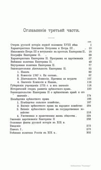 Настоящие лекции – общий курс истории России, в котором В. О. Ключевский изложил свою концепцию исторического развития России. Ученый полагает, что цель изучения местной истории такая же, как цель изучения человеческой истории вообще. Предмет всеобщей истории – это процесс человеческого общежития. Это общежитие слагается из взаимодействия различных общественных элементов, сил, строящих человеческое общество. Эти силы: природа и люди, лицо и общественный союз, власть и право, труд и капитал, знание и искусство и т.д. Эти силы присутствуют в каждом обществе, но общество, ими созидаемое, в разные времена и в различных местах выходит не одинаковым по своему характеру и своим формам. Это происходит оттого, что перечисленные общественные силы в разных местах и разные времена приходят не в одинаковые сочетания. Чем более разнообразные сочетания элементов мы изучаем, тем более узнаем новых свойств в общественных элементах, тем полнее познаем природу каждого из них. Путем исторического изучения мы познаем не только природу общественных элементов, но и их механизм, узнаем, когда известная общественная сила двигала человечество вперед и когда задерживала его движение, когда, например, капитал уничтожал свободный труд, не усиливая его производительности, и когда, наоборот, этот капитал помогал труду стать более производительным, не порабощая его. Таким образом, в курсе истории России В. О. Ключевского интересуют прежде всего следующие вопросы: какие своеобразные местные сочетания представляет данная история отдельного народа, как возникали эти своеобразные сочетания, какие новые свойства обнаруживали действующие в ней стихии. В своем изложении он ограничивается фактами экономической и политической жизни и делит историю на периоды, соответствующие изменениям отношений между основными общественными элементами. Первая часть включает три периода. Первый период продолжается с VIII до конца XII века, когда масса русского населения сосредоточивалась на среднем и верхнем Днепре с его притоками и историческим его водным продолжением областью Ловати-Волхова. Второй период – это время Верхне-Волжской удельной Руси с конца XII до половины XV века. Третий период начинается со вступления Иоанна III на княжеский стол в 1462 году и продолжается до 1613 года, когда на московском престоле появляется новая династия Вторая часть включает четвертый период – с 1613 года, когда земский собор выбрал на московский престол царя Михаила Федоровича до 1762 года – перемен в государственном положении дворянства, землевладельческом и служебном. Третья часть включает два отдела. Первый посвящен XVIII веку. Второй включает конец XVIII века и XIX столетие – по царствование Александра II (в приложении говорится об Александре III).