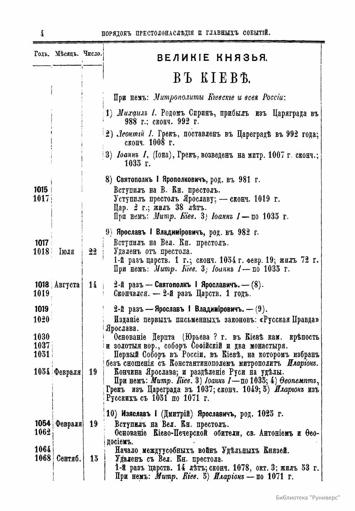 В книге опубликованы две таблицы. В них указан порядок престолонаследия Дома Рюриковичей и Дома Романовых до Александра II, а также сообщаются все основные события, происходившие при великих князьях и царях.