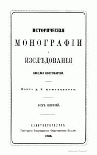 Историческiя монографiи и изслѣдованiя Николая Костомарова