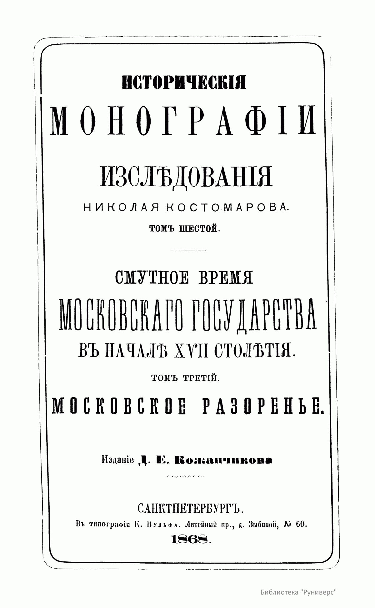 Историческiя монографiи и изслѣдованiя Николая Костомарова. Томъ шестой
