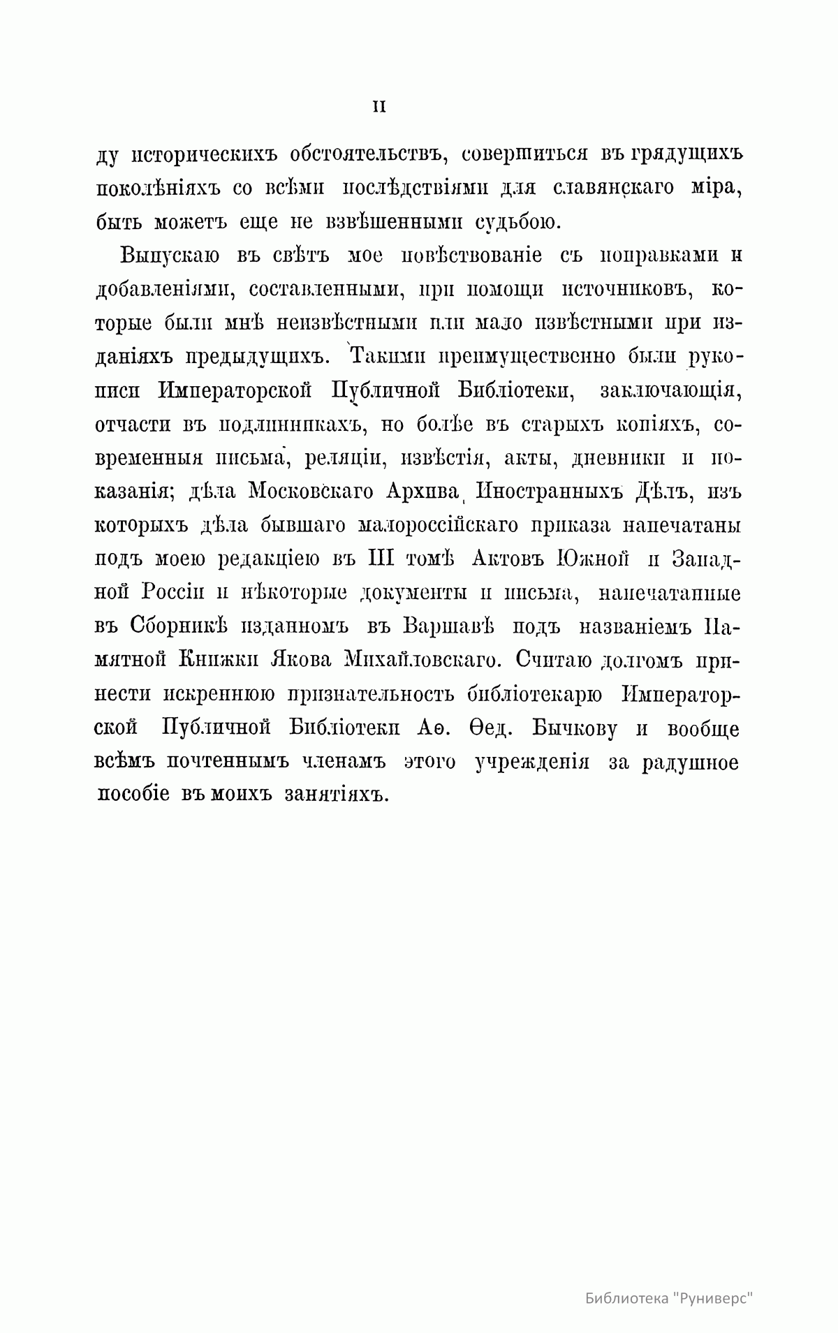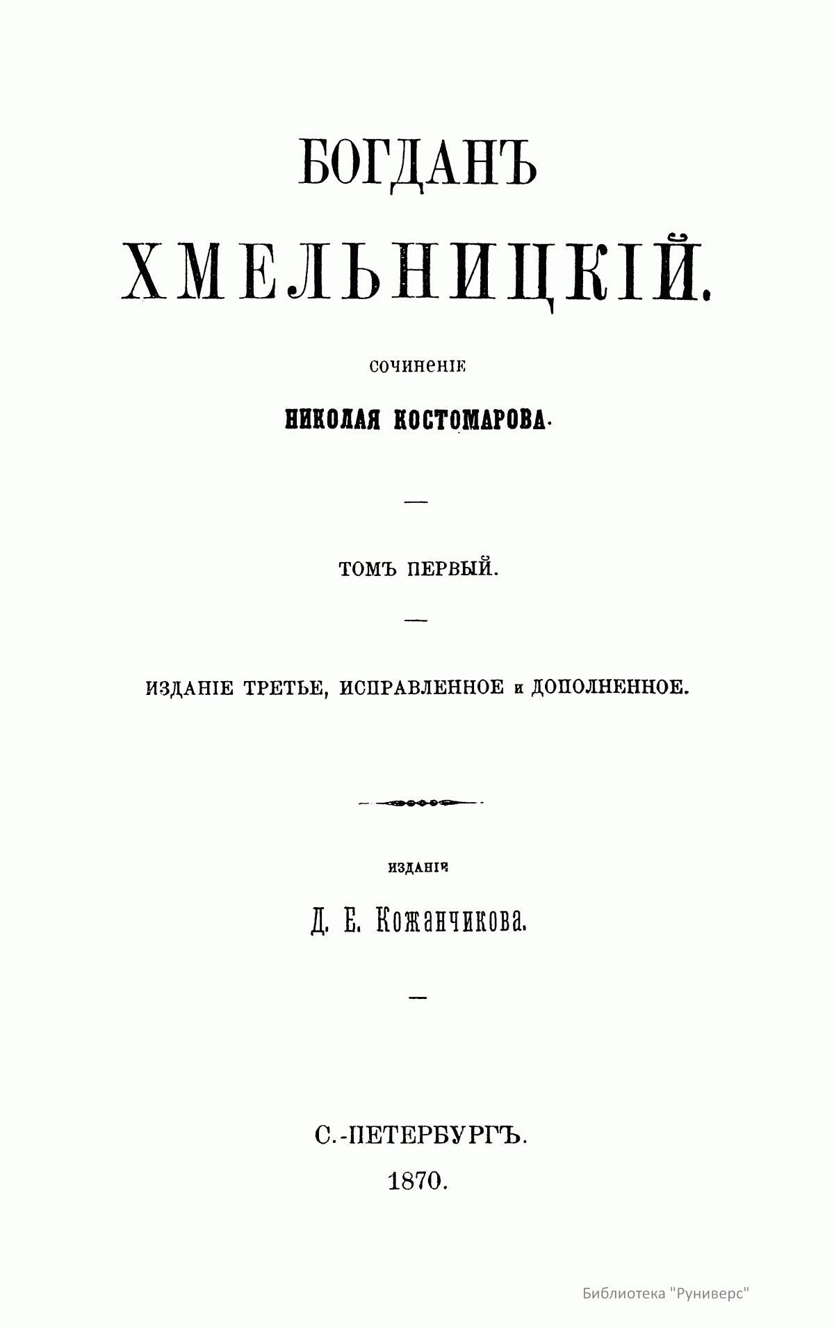 Перед читателем прижизненное издание трудов Н. И. Костомарова, в котором удачно соединялись историк-мыслитель и художник, что обеспечило ему не только одно из первых мест в ряду русских историков, но и наибольшую популярность среди читающей публики. Глубоко вдумываясь, почти вживаясь в изучаемую им старину, он воспроизводил ее в своих работах такими яркими красками, в таких выпуклых образах, что она надолго оставалась в памяти читателя. В первых трех томах и в двенадцатом томе опубликованы различные статьи. 1 – «Мысли о федеративном начале древней Руси»; «Черты народной южнорусской истории»; «Две русские народности»; «Мистическая повесть о Нифонте. Памятник русской литературы»; «Легенда о кровосмесителе»; «О значении Великого Новгорода»; «Должно ли считать Бориса Годунова основателем крепостного права?»; «Великорусские религиозные вольнодумцы в XVI веке. – Матвей Башкин и его соучастник Феодосий Косой»; «Иван Сусанин. Историческое исследование». 2 – «Иван Свирговский, украинский казацкий гетман XVI века»; «Гетманство Выговского»; «Бунт Стеньки Разина»; «По поводу мыслей светского человека, о книге «Сельское духовенство». 3 – «Куликовская битва»; «Ливонская война»; «Южная Русь в конце XVI века»; «Литовская народная поэзия»; «Об отношении русской истории к географии и этнографии». 12 – «Начало единодержавия в Древней Руси»; «Гетманство Юрия Хмельницкого»; «Церковно-историческая критика в XVII веке»; «История раскола у раскольников»; «Воспоминания о молоканах». Четвертый, пятый и шестой тома посвящены Смутному времени московского государства в начале XVII столетия. Седьмой и восьмой – истории Новгорода, Пскова и Вятки во время удельно-вечевого уклада. Девятый, десятый и одиннадцатый – Богдану Хмельницкому.