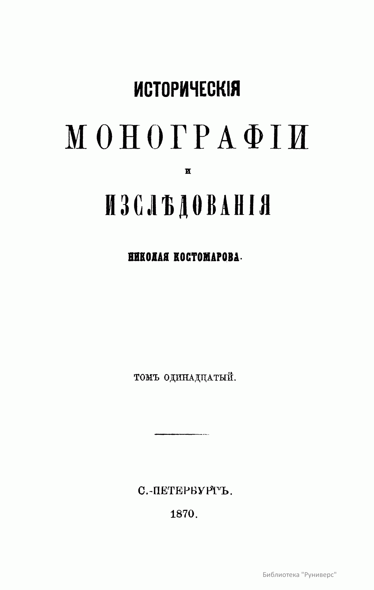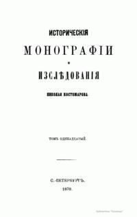 Историческiя монографiи и изслѣдованiя Николая Костомарова. Томъ одинадцатый
