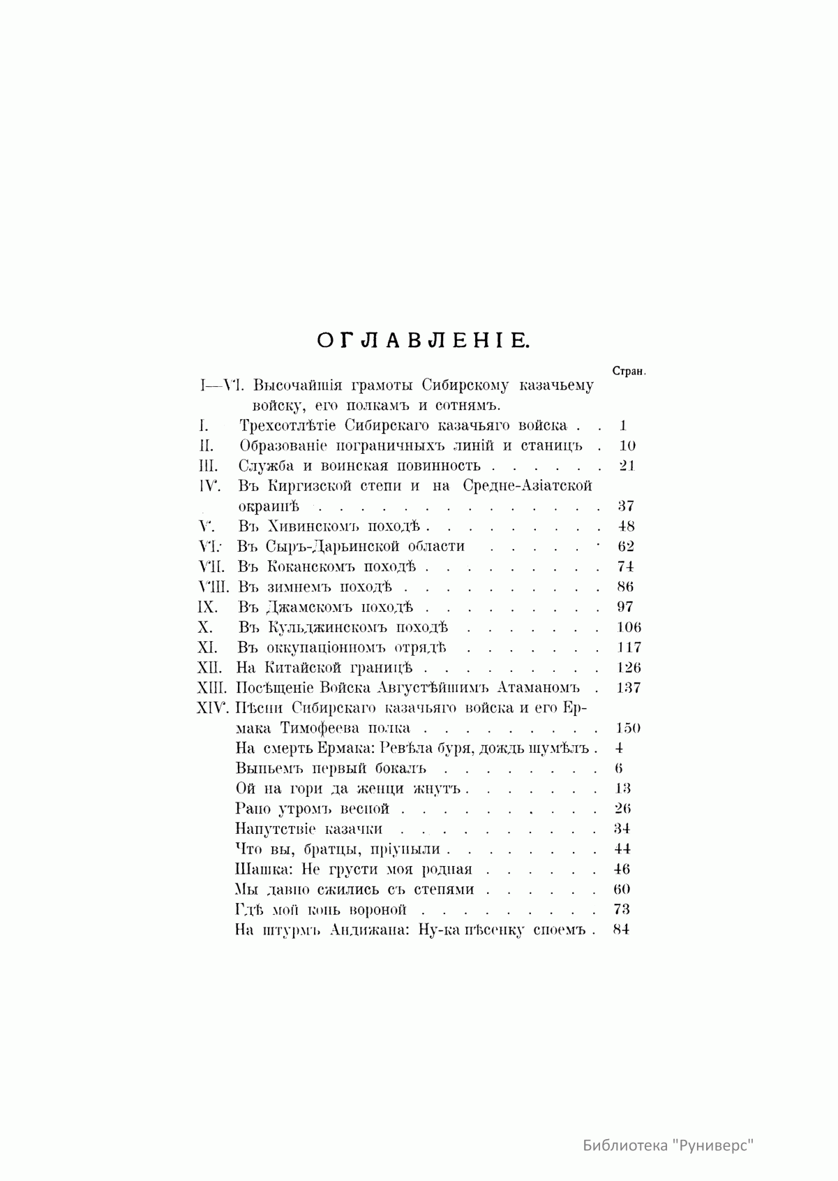 Издание знакомит читателя с историей выдающегося полка Сибирского казачьего войска. Написана она командиром 1-го Сибирского казачьего Ермака Тимофеева полка Н. А. Симоновым. Сибирские казаки являлись основой вооруженных сил Российской империи в Сибири. Книга знакомит читателя с принципами комплектования полка, дает представление о славных военных походах, рассказывает о характере службы сибирских казаков, подробно повествует о полковых регалиях и пожалованных императором грамотах и отличиях.