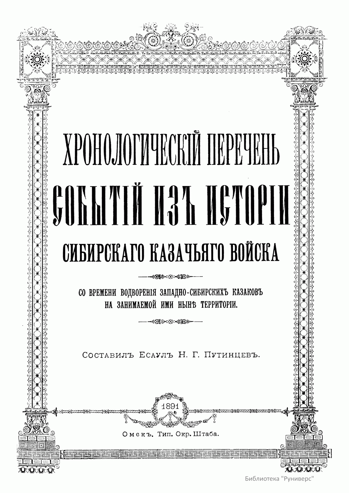Предлагаемое издание представляет собой хронологическое описание жизни казаков Сибирского линейного войска с момента его образования. Автор этого единственного в своем роде труда — Путинцев Николай Григорьевич (1860–?) — есаул Сибирского казачьего войска, командир 5-го казачьего полка, большую часть своей деятельности посвятил исследованию и написанию истории сибирских казаков. Многие годы провел он в войсковых архивах в поисках и изучении документов о появлении казаков в Сибири и становлении казачьего войска, собирал сведения о формировании отдельных войсковых частей, материалы по истории устава и традиций сибирских военных казаков. В результате этого многолетнего труда, в год 175-летия водворения казаков на берегах Иртыша, была опубликована данная работа, где автор подчеркивает особое место Сибирского казачьего войска в истории освоения Россией новых территорий.