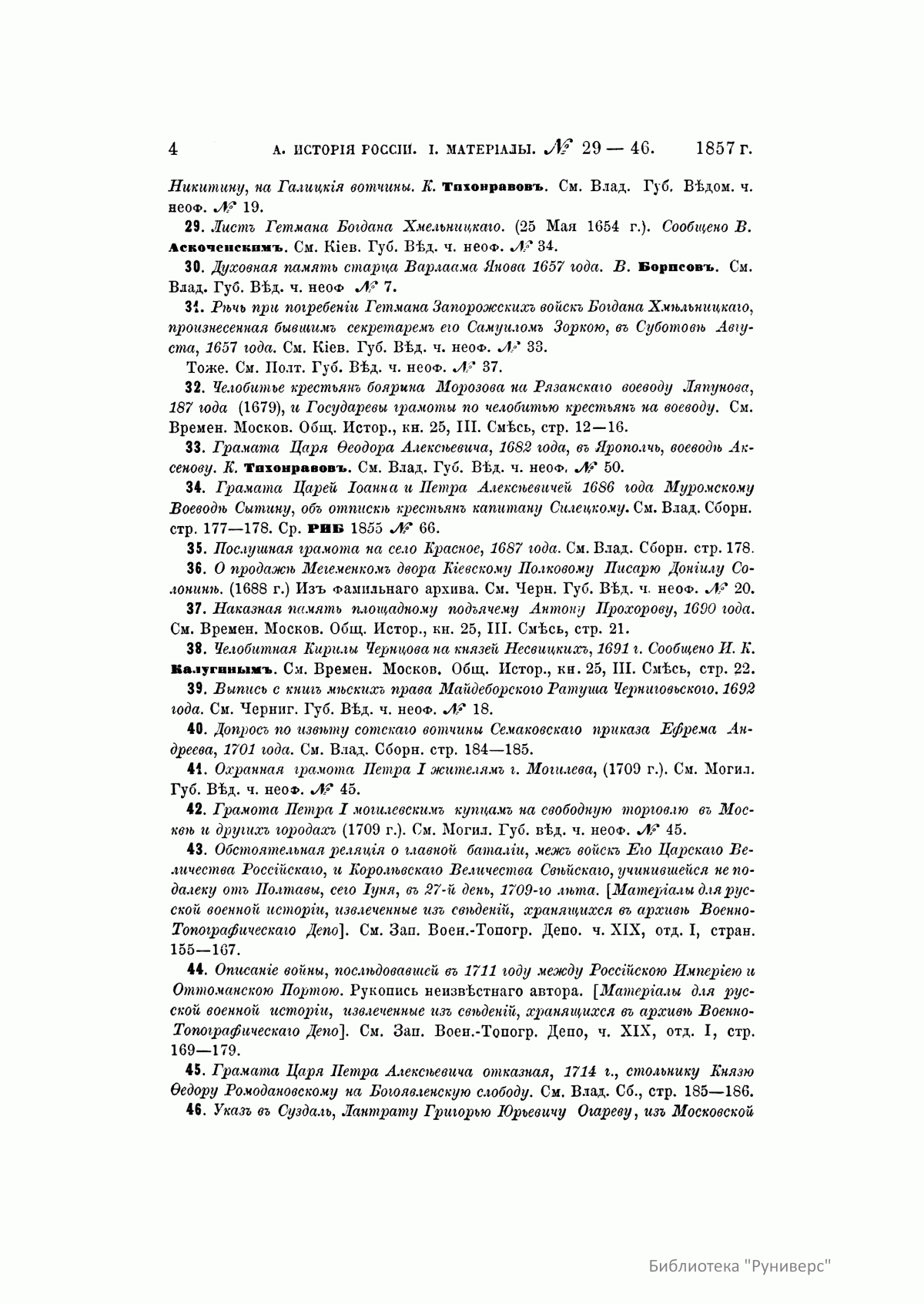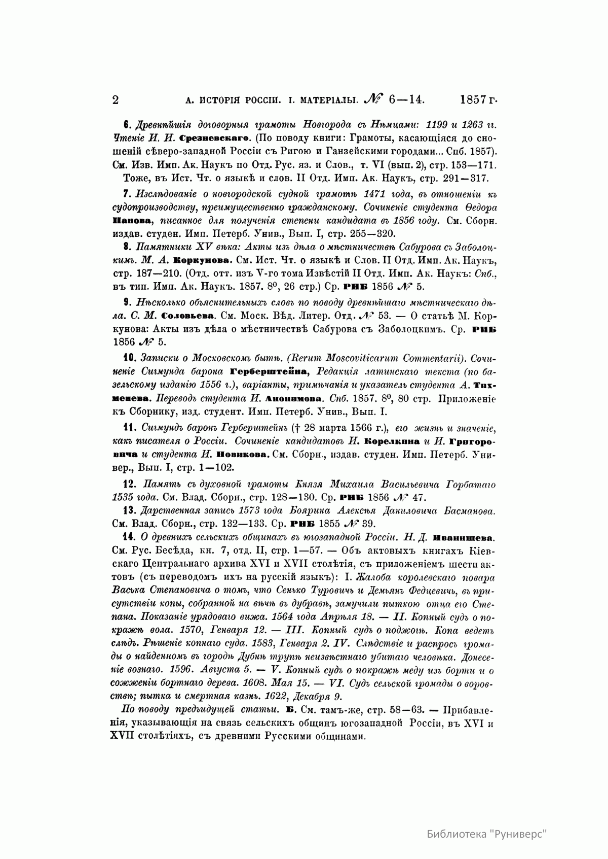 В десяти томах «Русской исторической библиографии» заключается описание свыше 44 000 книг, карт, периодических изданий, статей из журналов и газет по русской и всеобщей истории. Кроме этого, богато представлена литература о Крымской войне 1853–1856 гг., реформе 1860-х гг., польском восстании 1863–1864 гг. и о других событиях.
