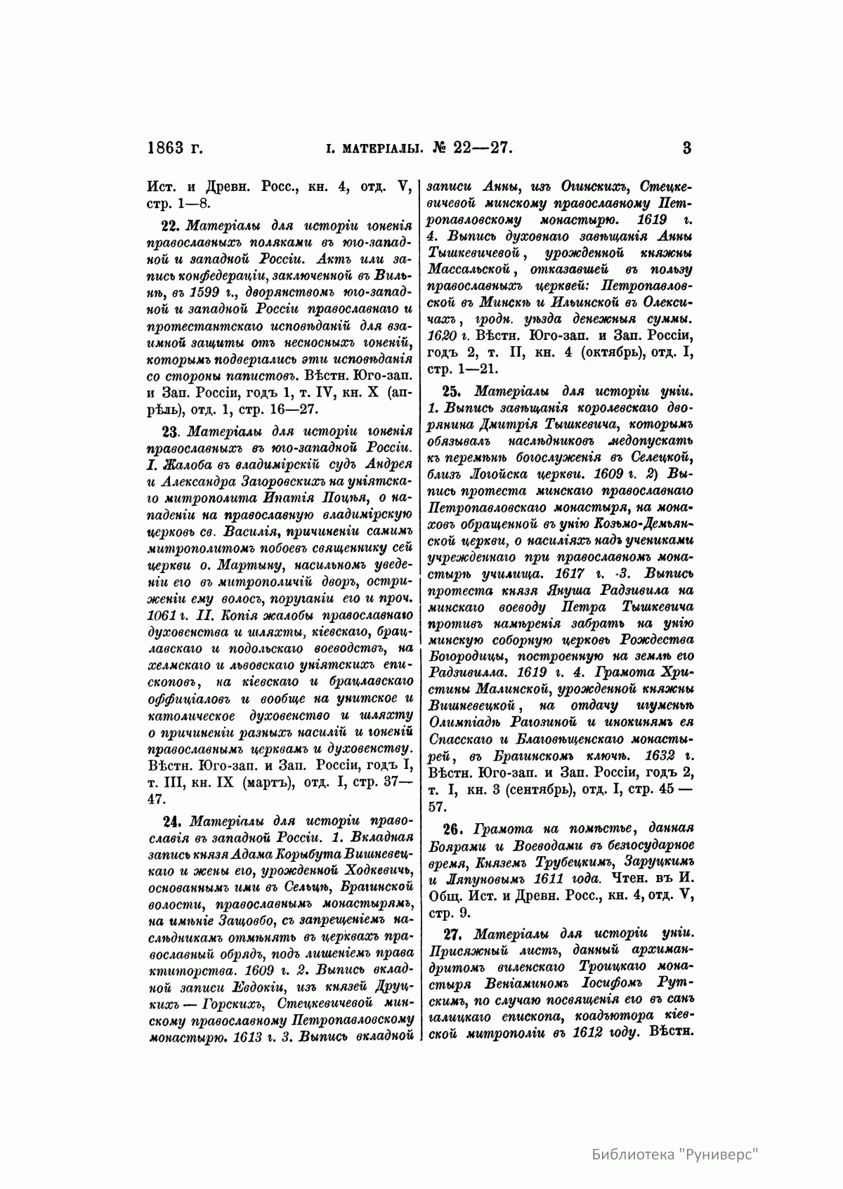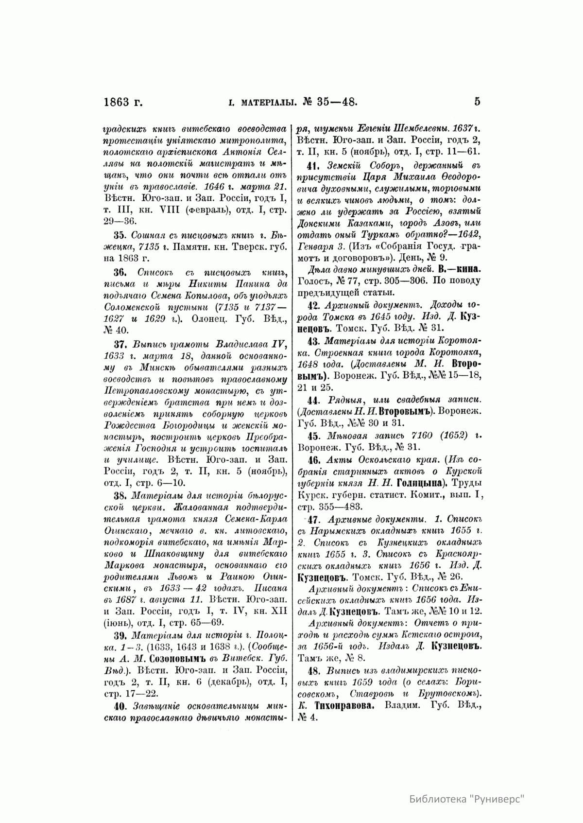 Русская историческая библиографiя. Годъ девятый. 1863