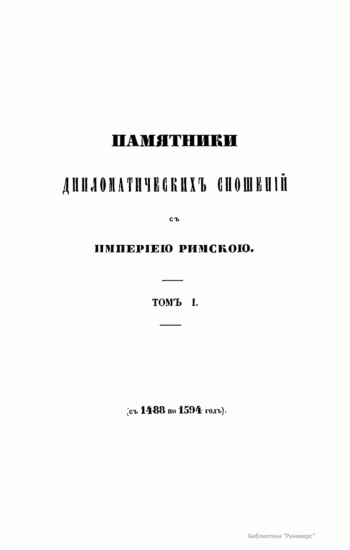 Памятники дипломатических сношений c Империею Римскою. Том I. С 1488 по 1594