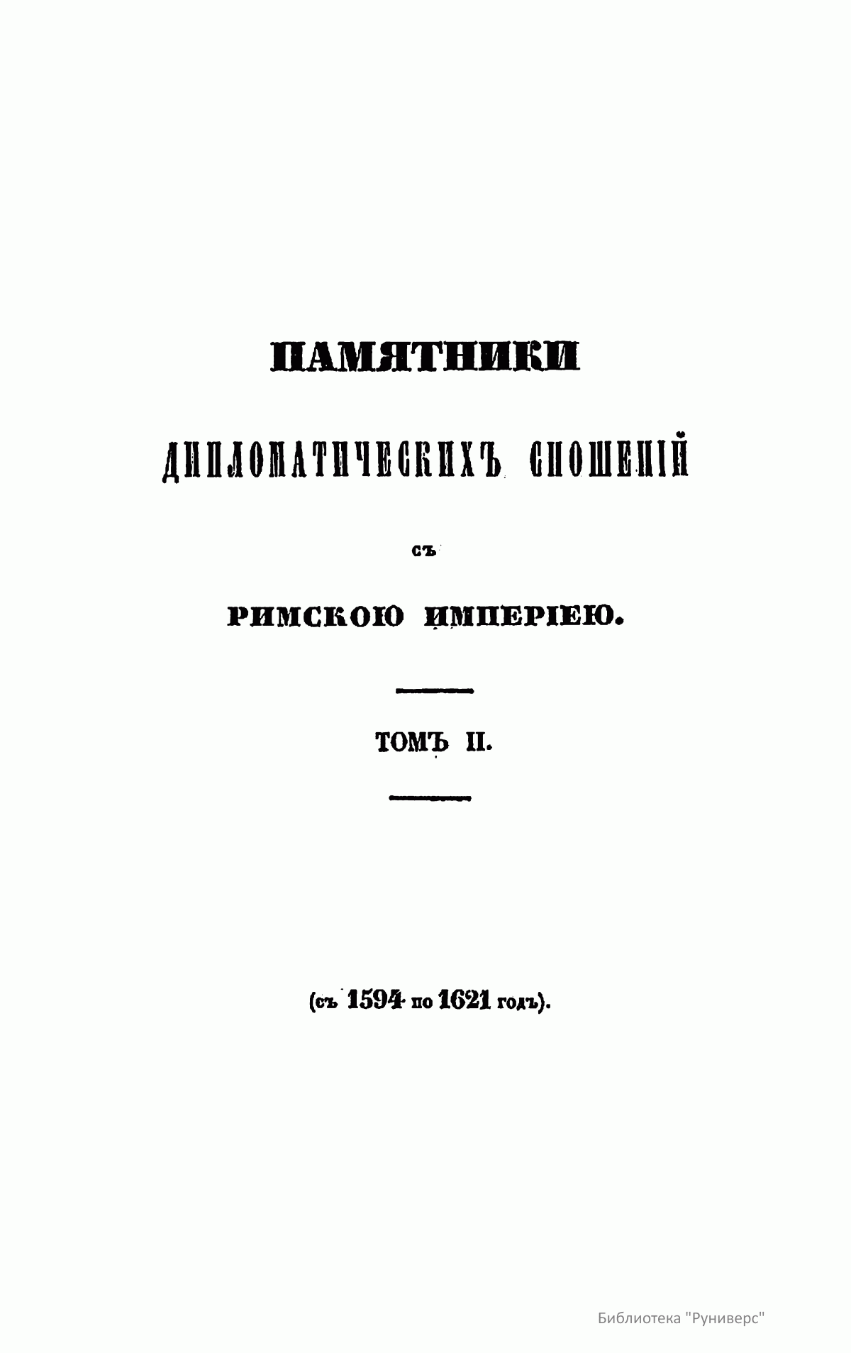 Памятники дипломатических сношений с Римскою Империею. Том II. С 1594 по 1621 год