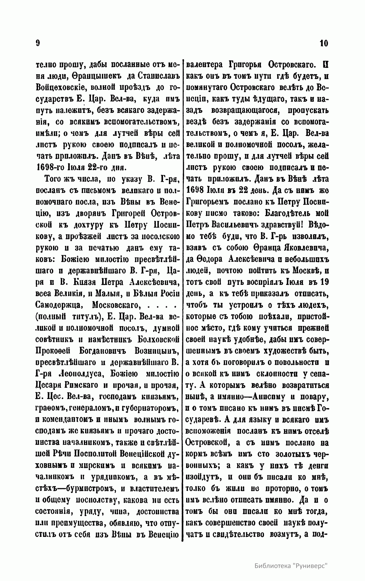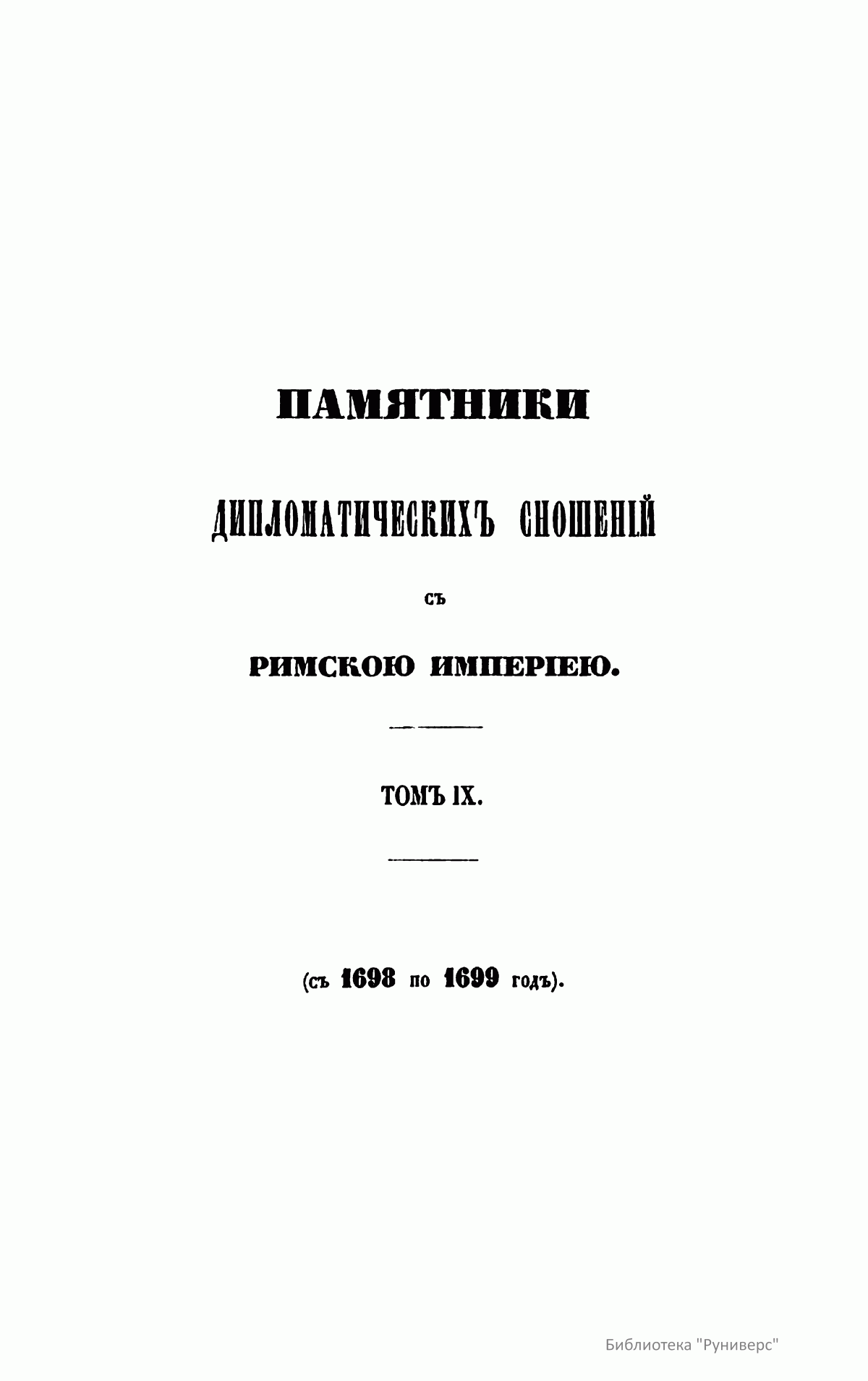 Памятники дипломатических сношений с Римскою Империею. Том IX. С 1698 по 1699 год