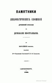 Памятники дипломатических сношений древней России с державами иностранными