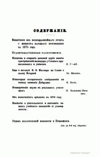С 1864 года стали выходить указатели к повременным изданиям Министерства народного просвещения начиная с 1803 года.