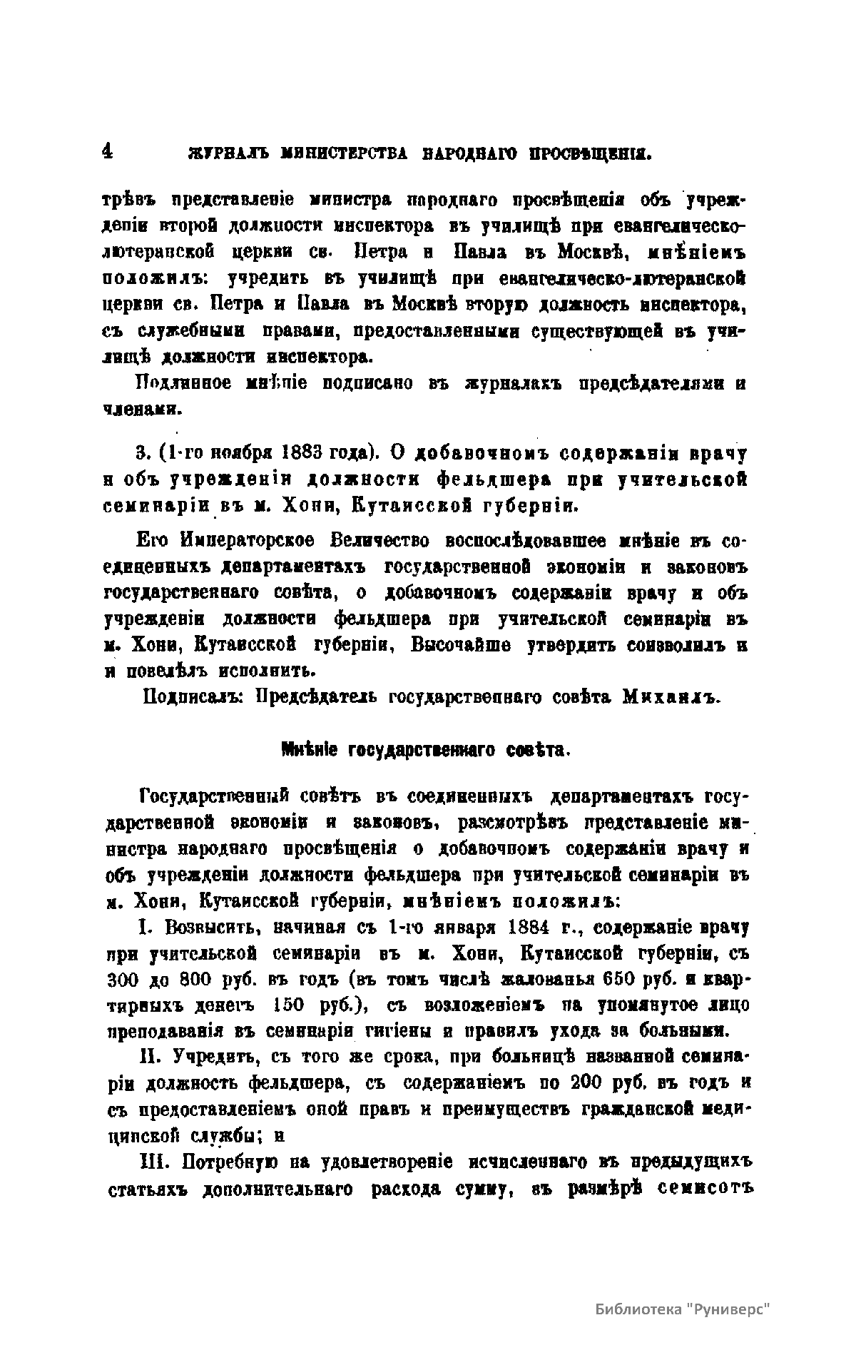 Журнал Министерства народного просвещения выходил с 1834-го по 1917 год. Официальный периодический журнал об успехах просвещения в России. Издатели журнала уверены в том, что «если для каждого человека необходим выход из грубой тьмы невежества и беспрерывное дальнейшее движение к свету, то для народов необходимо попечительное участие правительства в образовании. Только правительство имеет все средства знать и высоту успехов всемирного образования, и настоящие нужды Отечества».