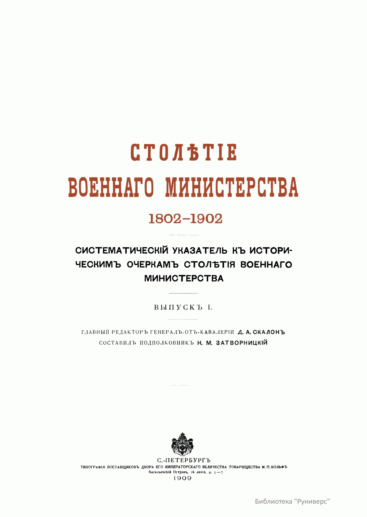 Систематический указатель к историческим очеркам столетия военного министерства. Выпуск I. Книга 2