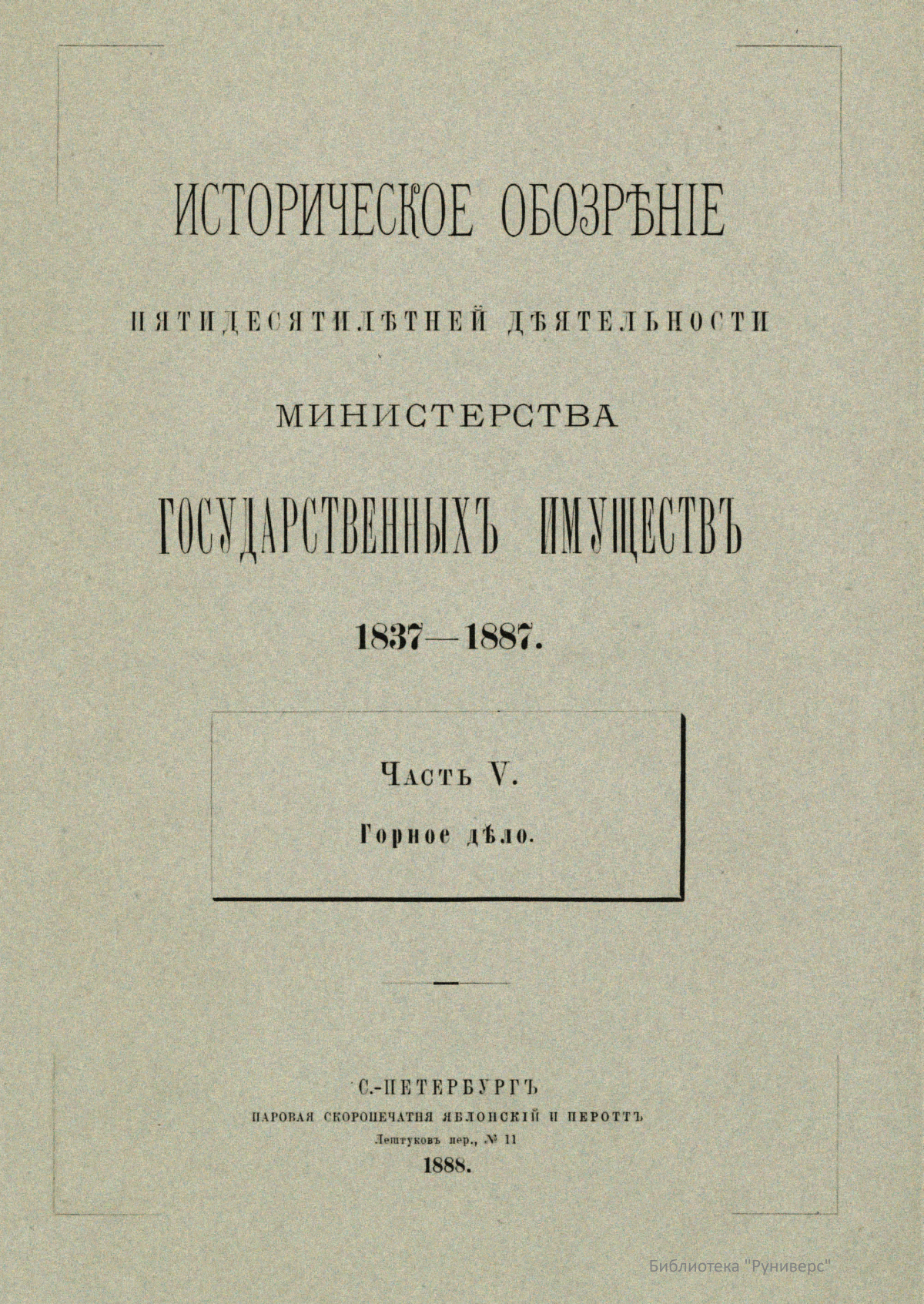 Историческое обозрѣнiе пятидесятилѣтней дѣятельности министерства государственныхъ имуществъ. 1837-1887. Часть V. Горное дело