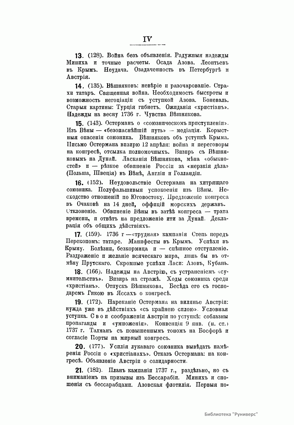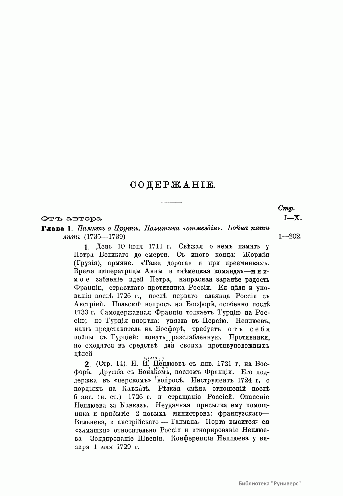 В книге подробно описана русско-турецкая война 1735 – 1739 гг. и роль графа Андрея Ивановича Остермана во внешней политике русского государства. По мнению автора, заслуженного профессора Императорского Новороссийского университета, «время турецкой политики Остермана – это молодые годы в нашей истории восточного вопроса… Они дали целую политическую программу для действий в будущем». Остерман Генрих Иоганн Фридрих (Андрей Иванович), (1686 – 1747), граф, знаменитый русский дипломат, сумевший удержаться на неизменной высоте в течение нескольких царствований. Во время правления Анны Иоанновны был против разорительной войны 1735 – 1739 гг. с турками, закончившейся заключенным им белградским миром. Русско-турецкая война 1735 – 1739 гг. – война между Российской (в союзе c Австрией) и Османской империями. Война соответствовала стратегии России по обретению выхода к Черному морю и пресечению набегов крымских татар. Русские войска под командованием Миниха взяли Азов, Очаков, Хотин, Яссы, дважды занимали Крым. По мирному договору 1739 г., заключенному в Белграде, Россия оставляла за собой Азов, но обязывалась срыть все имеющиеся там укрепления. Ей запрещалось иметь флот на Черном море, а для торговли на нем должны были использоваться турецкие суда. Таким образом, задача выхода к Черному морю практически не была решена.
