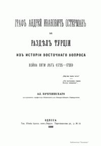 Графъ Андрей Ивановичъ Остерманъ и раздѣл Турцiи. Изъ исторiи восточнаго вопроса. Война пяти лѣтъ (1735-1739)