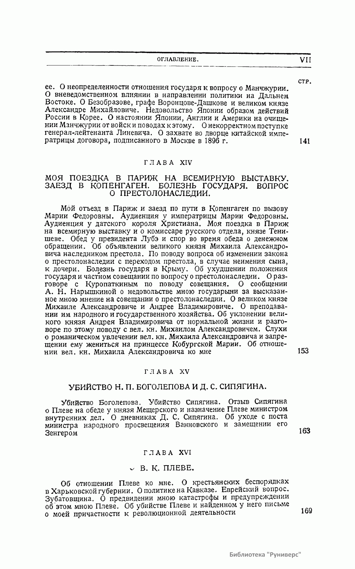Воспоминания графа, русского государственного деятеля Сергея Юльевича Витте (1849 – 1915) опубликованы в трех томах. Первый том охватывает события от смерти Александра III до 17 октября 1905 года. Второй том – от манифеста 17 октября 1905 года до убийства Столыпина в 1911 г. В третьем томе изложение доведено до смерти Александра III и включает воспоминания о детстве автора. Все три тома снабжены подробным оглавлением.