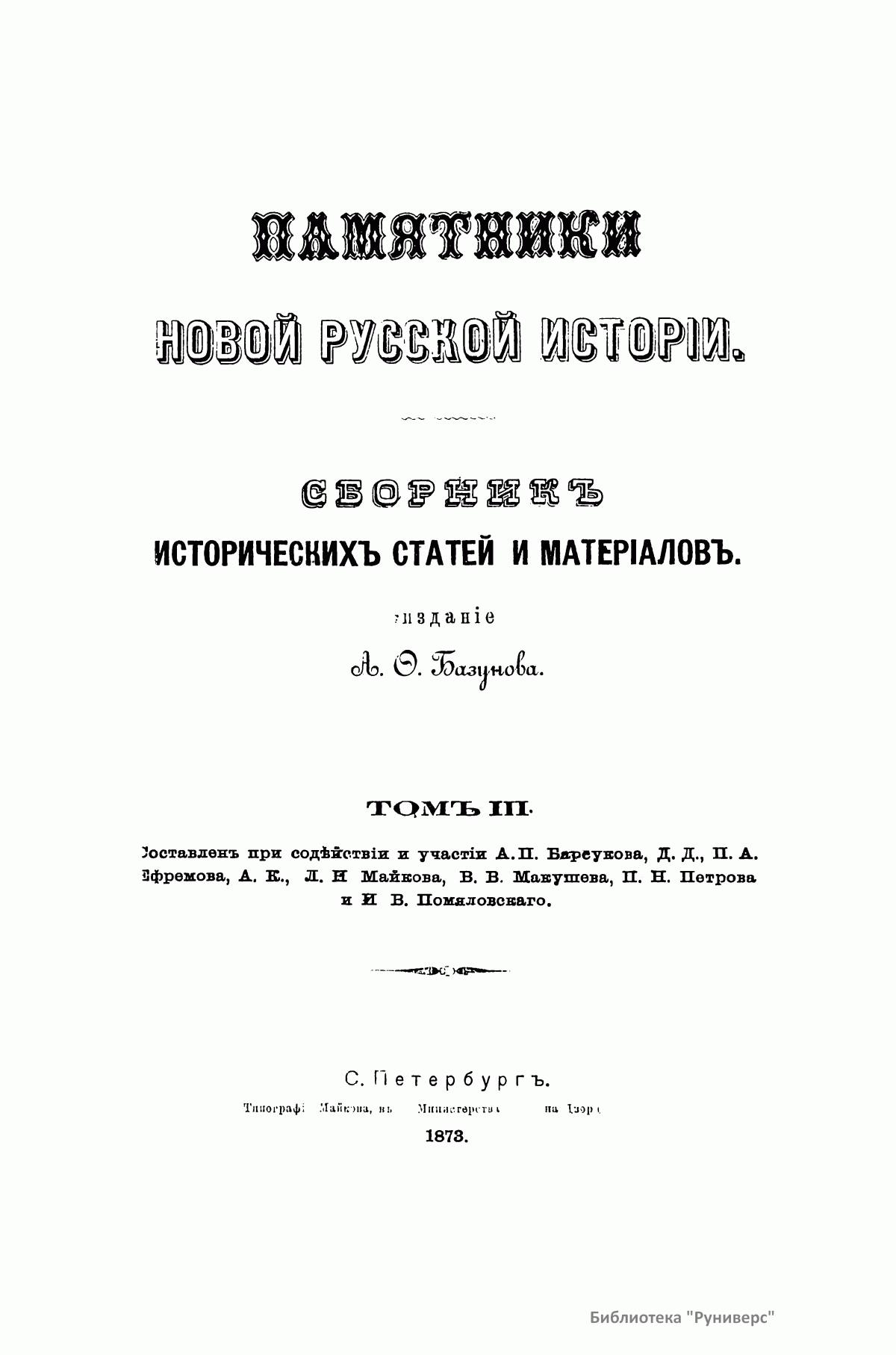 Памятники новой русской истории. Том III