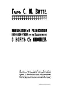 Вынужденныя разъясненiя по поводу отчета Ген.-Ад. Куропаткина о войнѣ съ Японiей