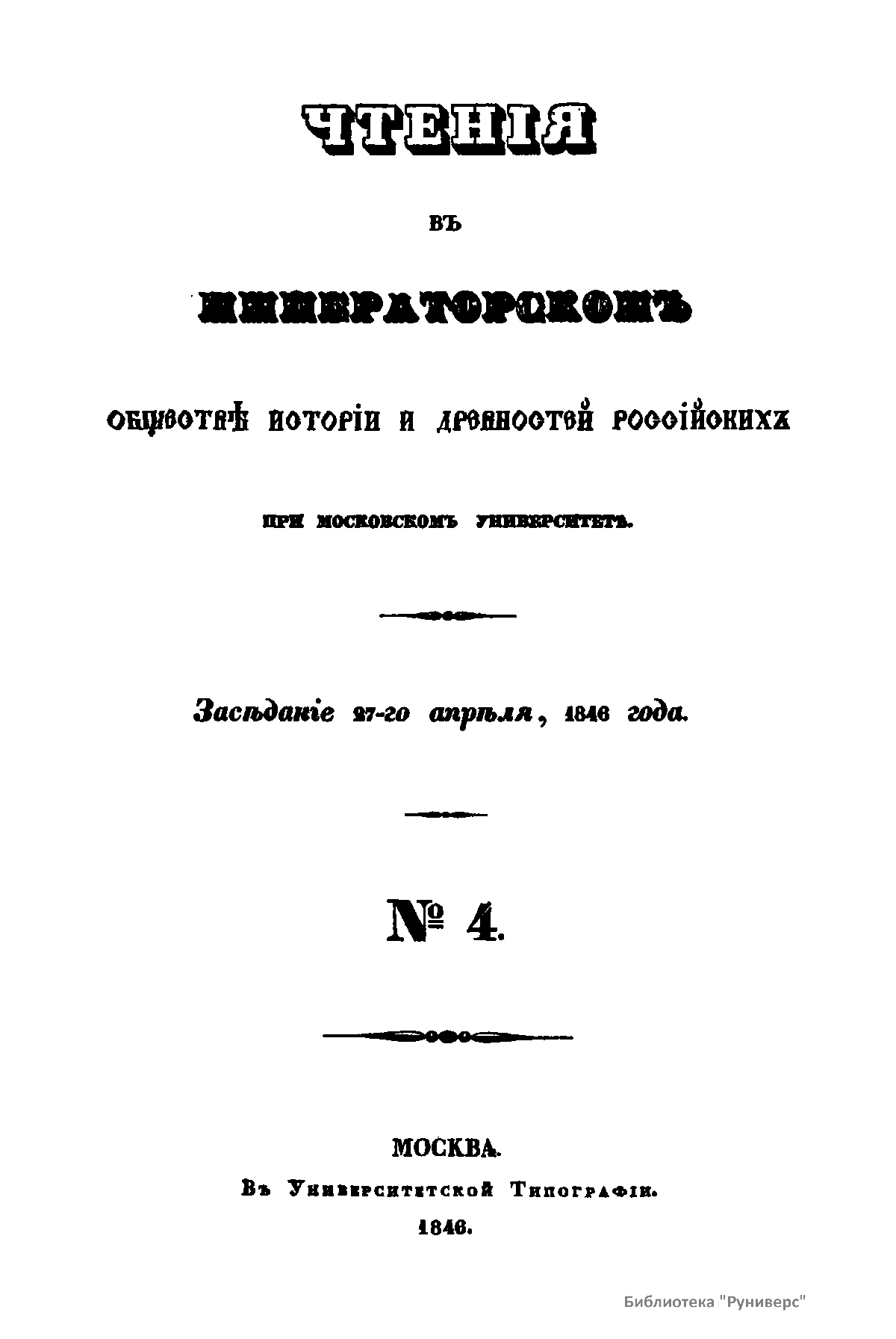 Чтенiя въ Императорскомъ Обществѣ Исторiи и Древностей Россiйскихъ при Московскомъ Университетѣ. Годъ первый. №4