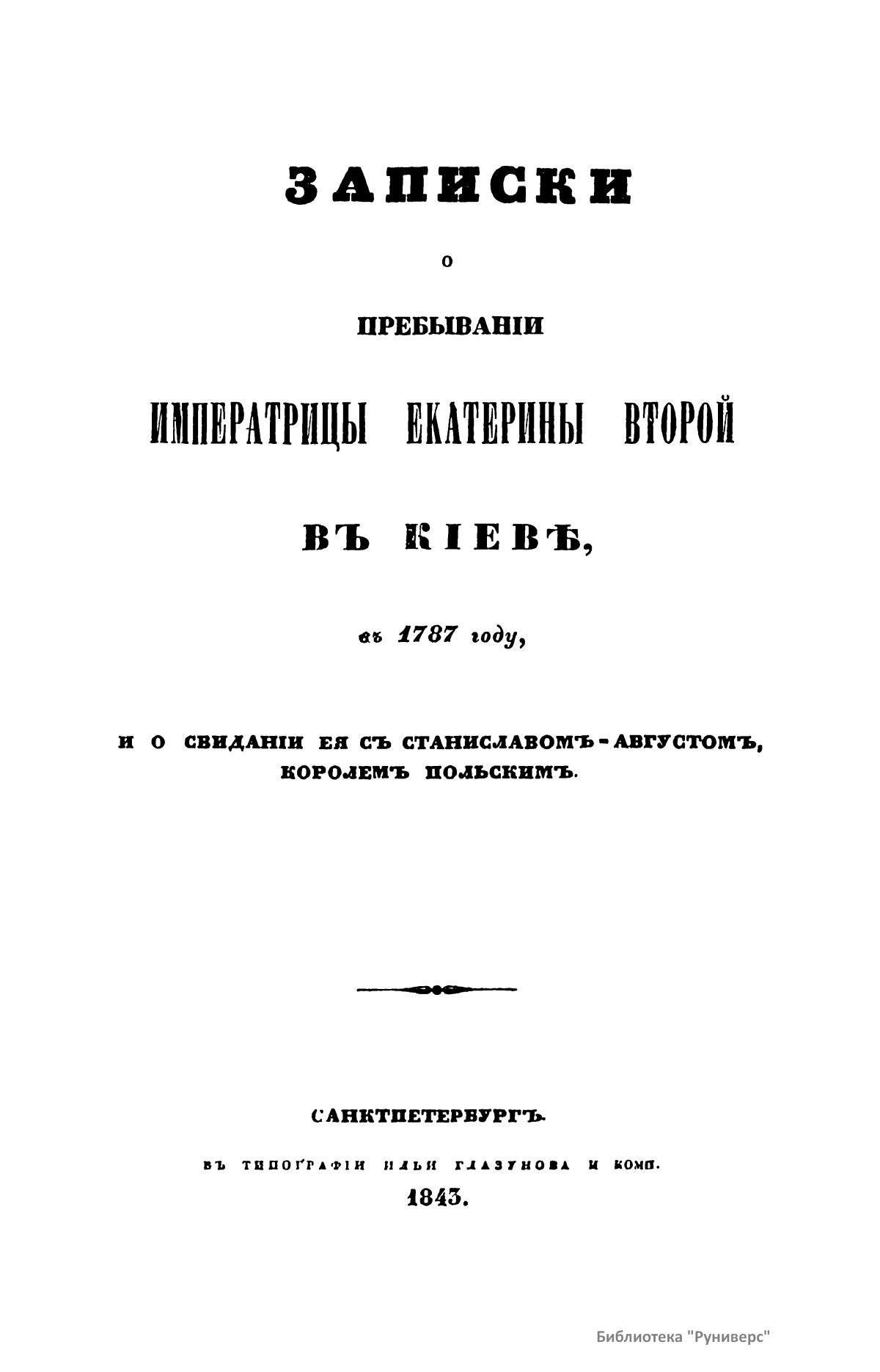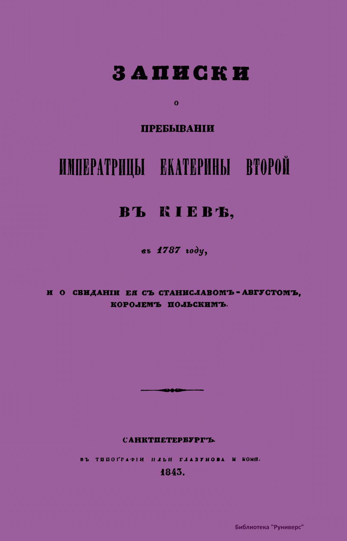 Записки о пребывании Императрицы Екатерины Второй в Киеве, в 1787 году, и о свидании ее с Станиславом-Августом Королем Польским
