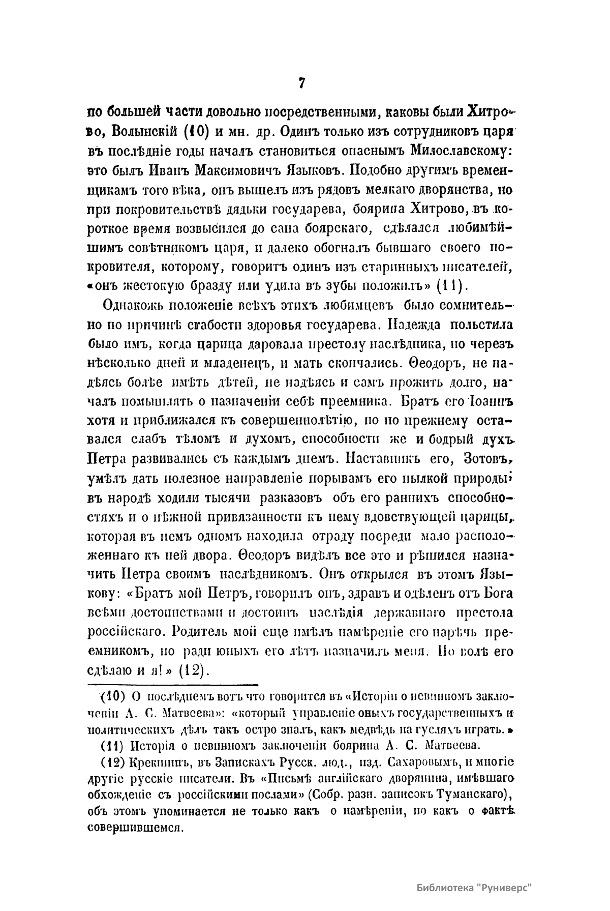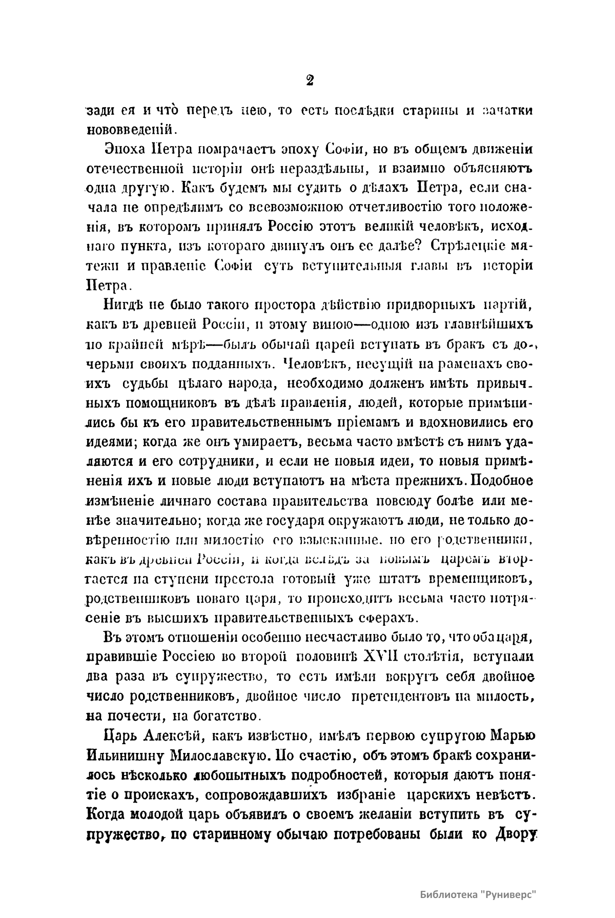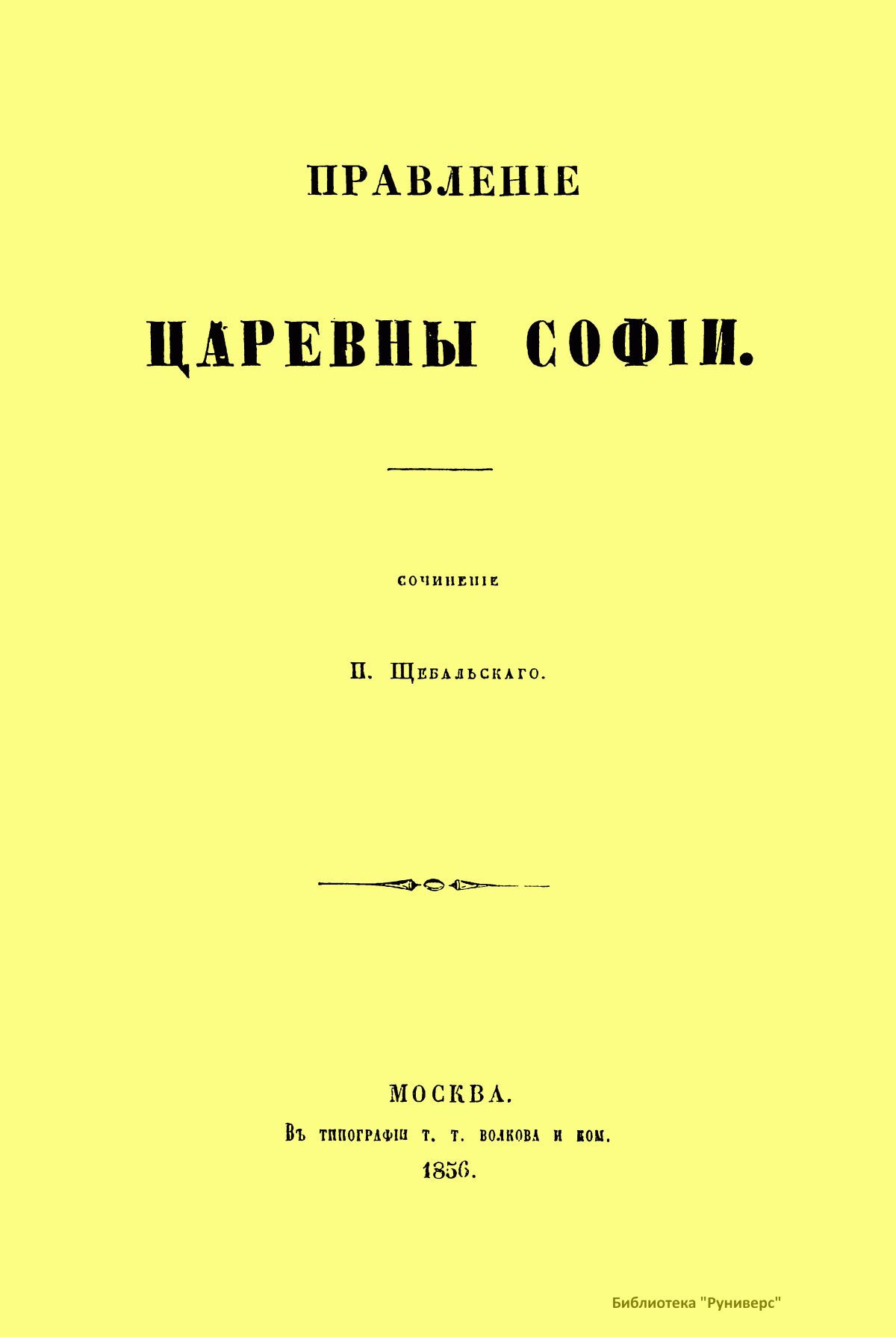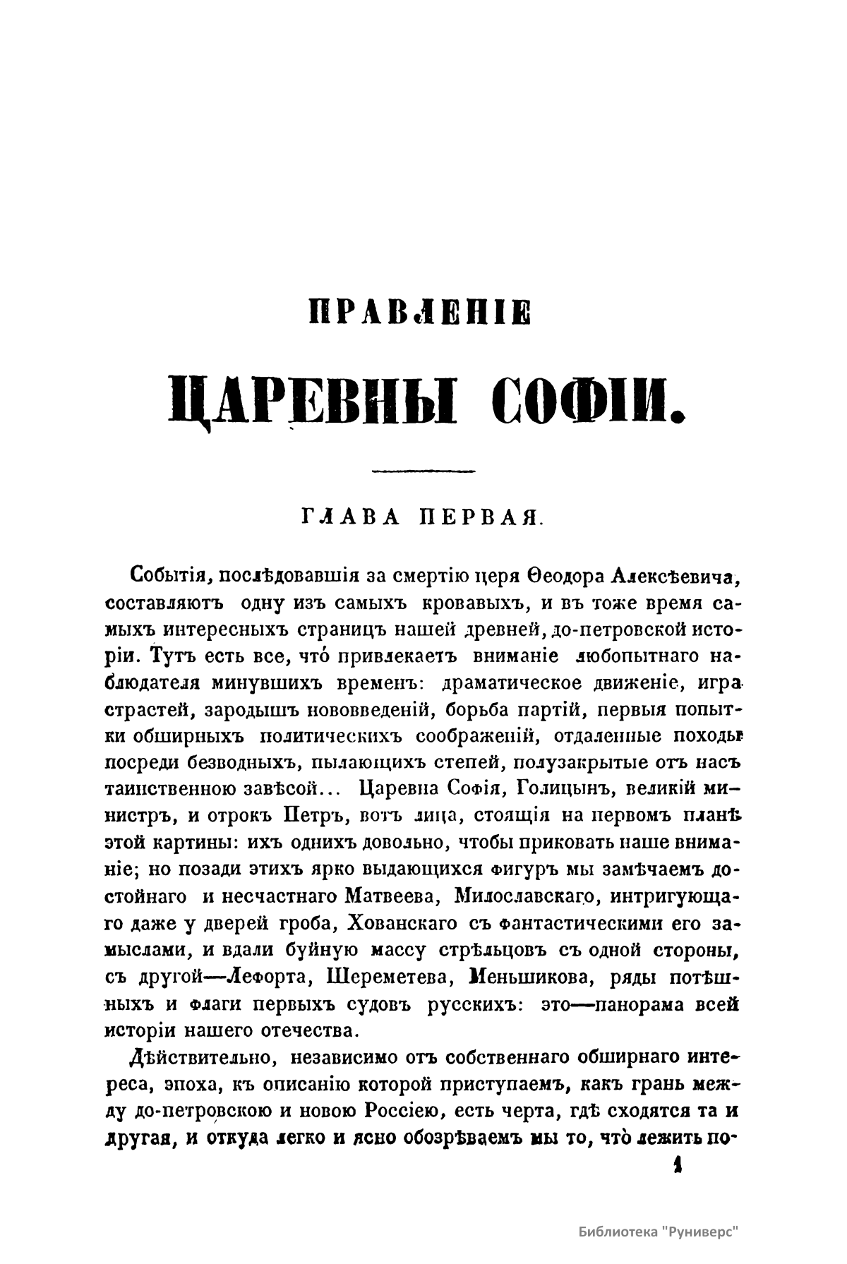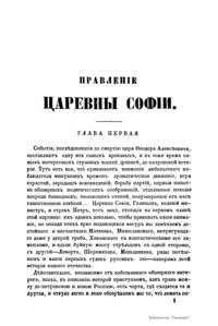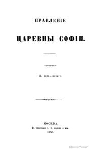 Софья Алексеевна (1657 – 1704), русская царевна, правительница русского государства в 1682 – 1689 гг., при двух царях – ее малолетних братьях Иване V и Петре I. К власти пришла с помощью В.В. Голицына. Свергнута Петром I, заключена в Новодевичий монастырь. Автор публикации считает, что невозможно судить о деяниях Петра, если сначала не определить со всевозможной отчетливостью того положения, в котором принял Россию этот великий человек. Стрелецкие мятежи и правление Софьи – это вступительные главы в истории Петра. Эпоха Петра помрачает эпоху Софьи, но в общем движении отечественной истории они нераздельны и взаимно объясняют одна другую.