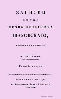 Записки Князя Якова Петровича Шаховскаго, писанныя имъ самимъ