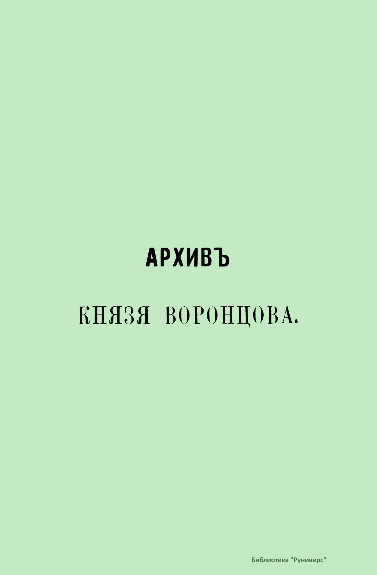 Издание представляет документы из архива графов (с 1845 г. князей) Воронцовых, крупных политических деятелей России XVIII и XIX вв.: Михаила Илларионовича (1714 – 1767) – канцлера при Елизавете Петровне; Романа Илларионовича (1707 – 1783); Александра Романовича (1741 – 1805) – канцлера в 1802 – 1804 гг.; Семена Романовича (1744 – 1832) – посла в Англии в 1785 – 1806 гг.; Михаила Семеновича (1782 – 1856) – фельдмаршала, наместника Кавказа в 1845 – 1853 гг. Архив издан в 40 тт. (1870 – 1895) под редакцией П. И. Бартенева. Содержит огромный материал по внешней политике, по управлению хозяйством Елизаветы Петровны (кн. 1), по делу Миниха и Бирона (кн. 2), о «чумном бунте» 1771 г. в Москве, о движении Е. И. Пугачева (кн. 16), о А. Н. Радищеве (кн. 5, 12, 24). Книга 21-я занята «Записками» Е. Р. Воронцовой (Дашковой). В книге 24-й – свыше 100 писем А. В. Суворова. Среди обширной переписки Воронцовых встречаются письма Вольтера, Д'Аламбера, Жозефа де Местра, Костюшки, Талейрана, Питта и др.