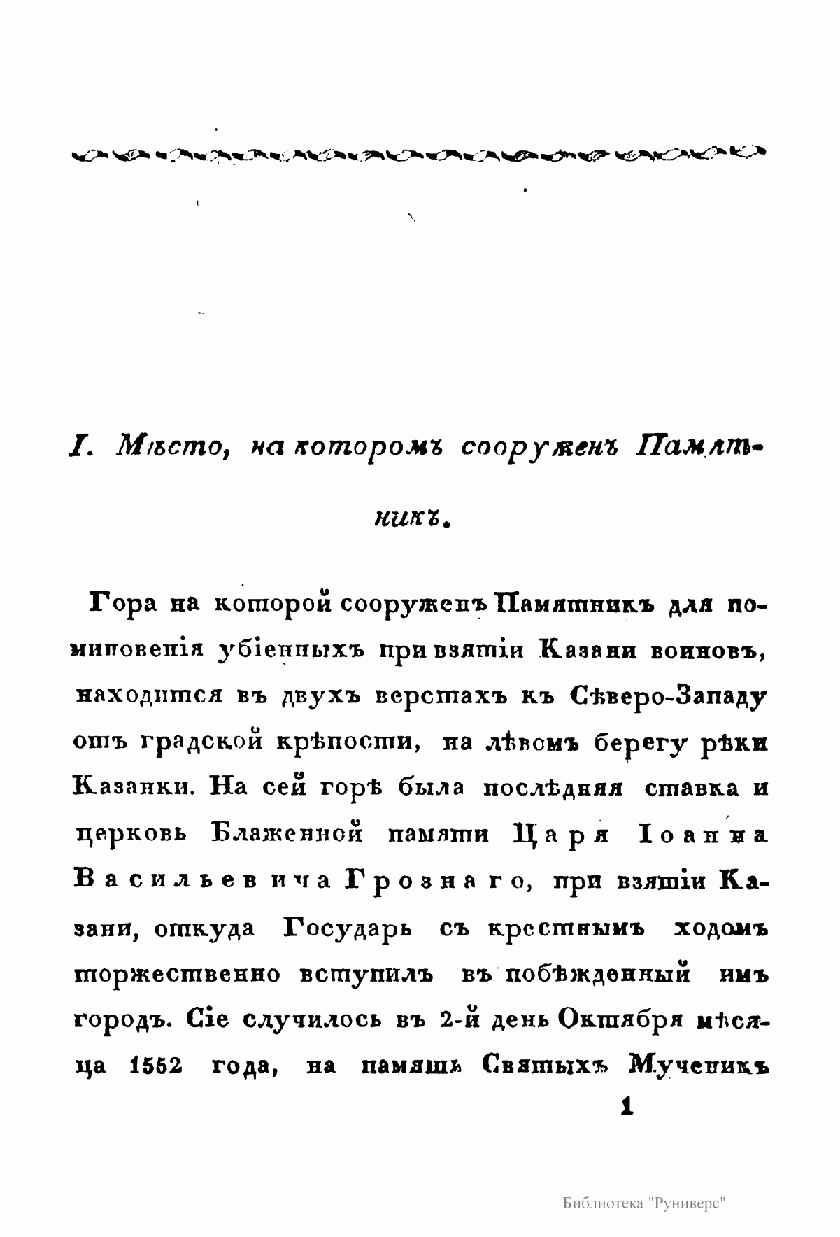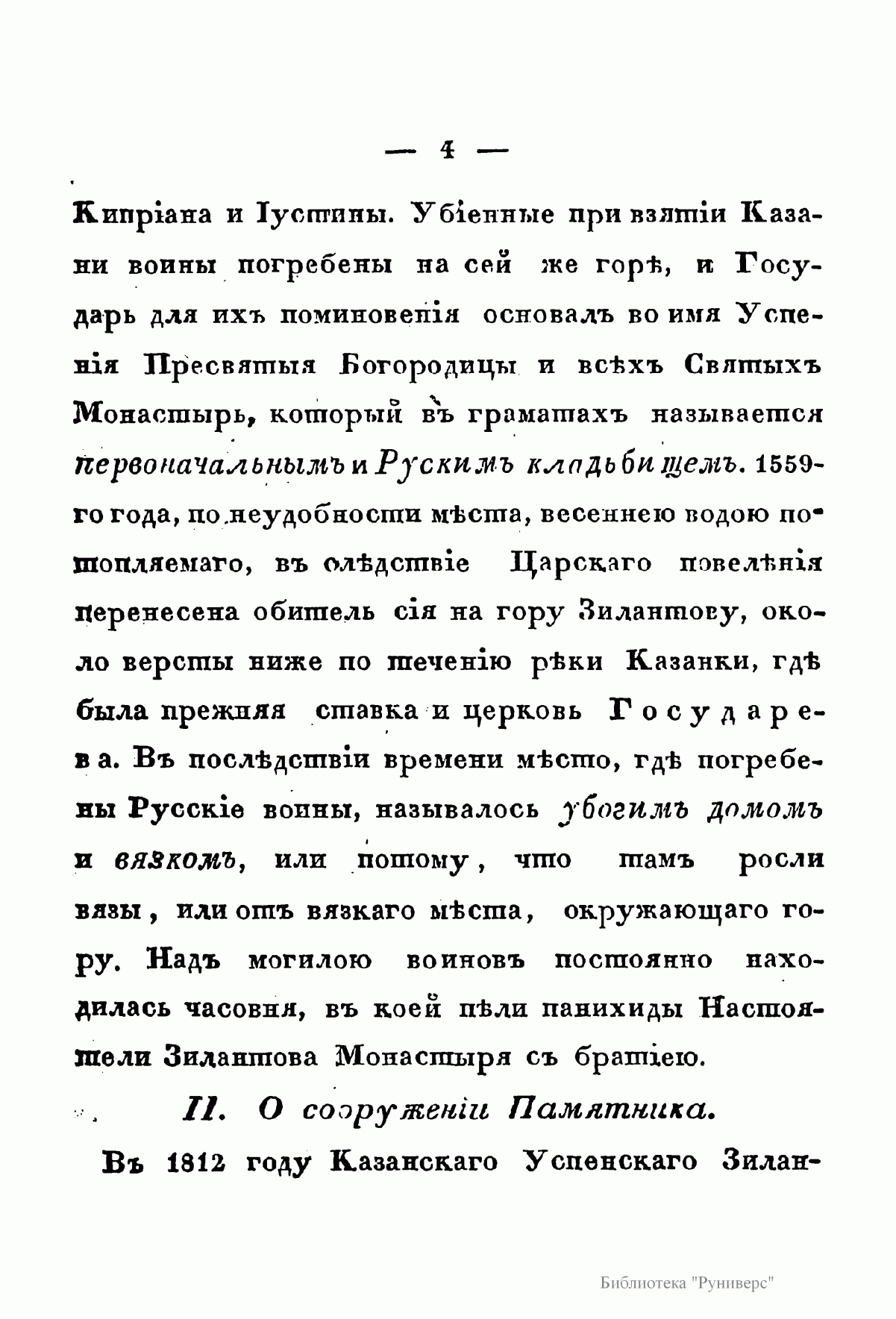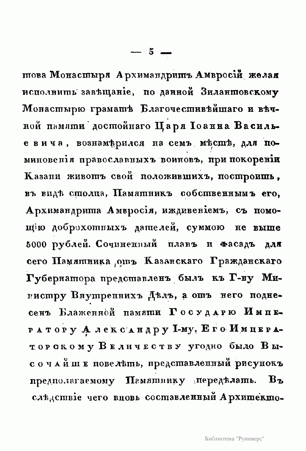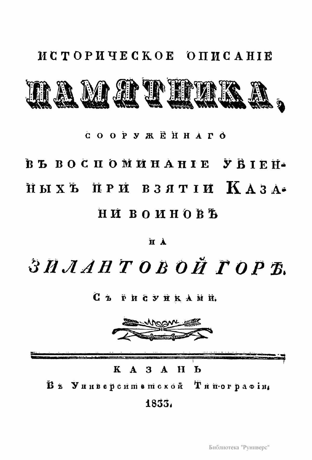Историческое описание памятника, сооруженного в воспоминание убиенных при взятии Казани воинов на Зилантовой горе