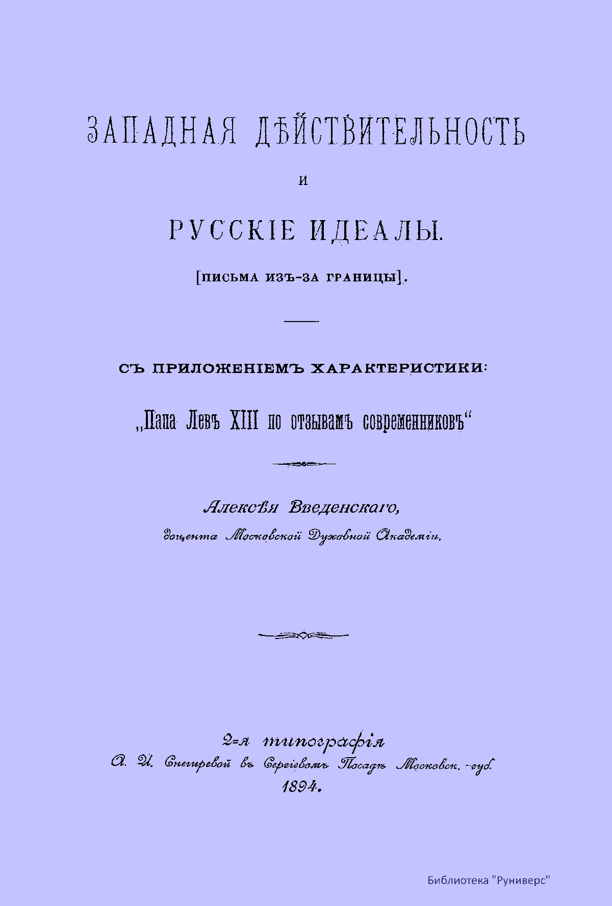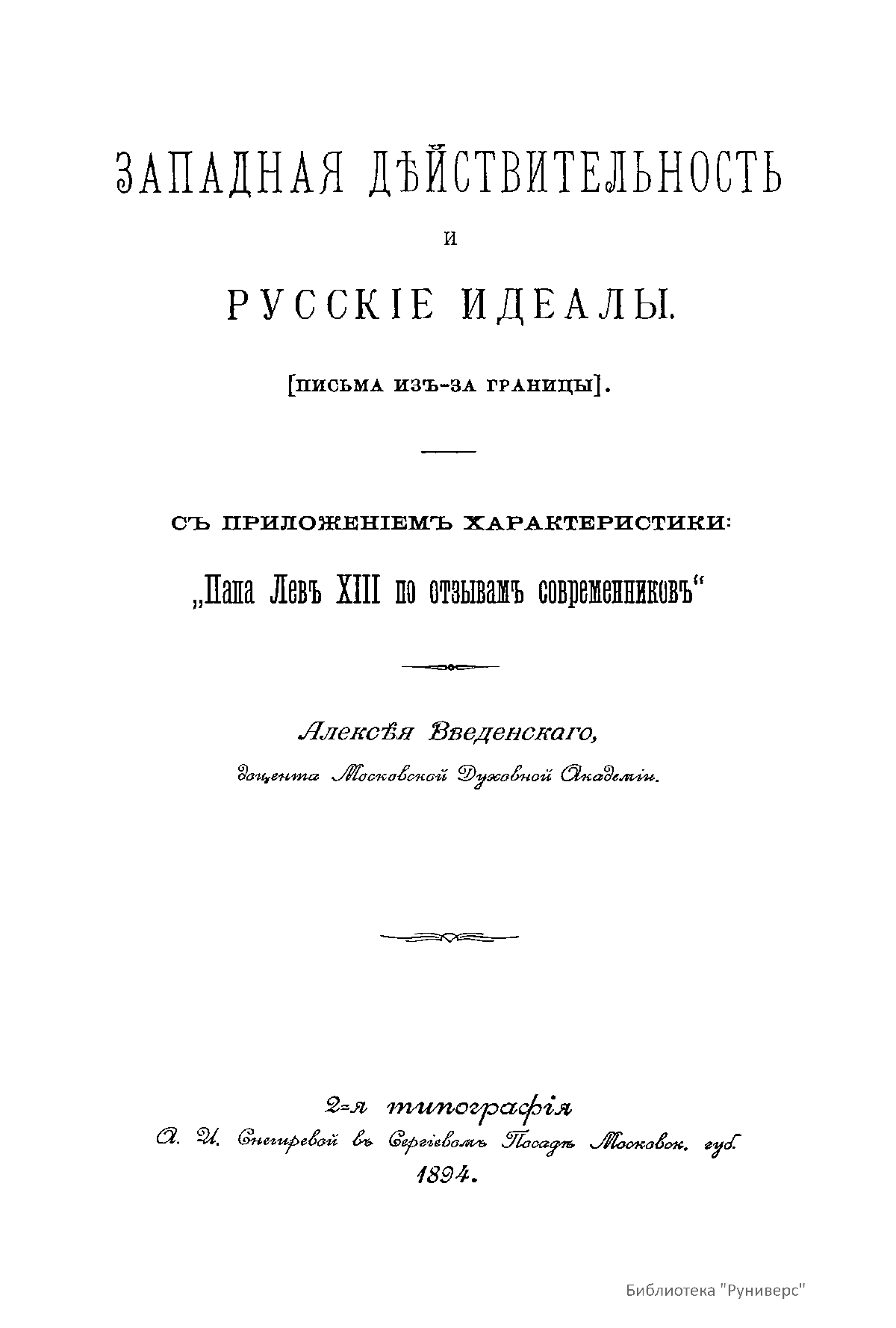 Западная дѣйствительность и русскiе идеалы