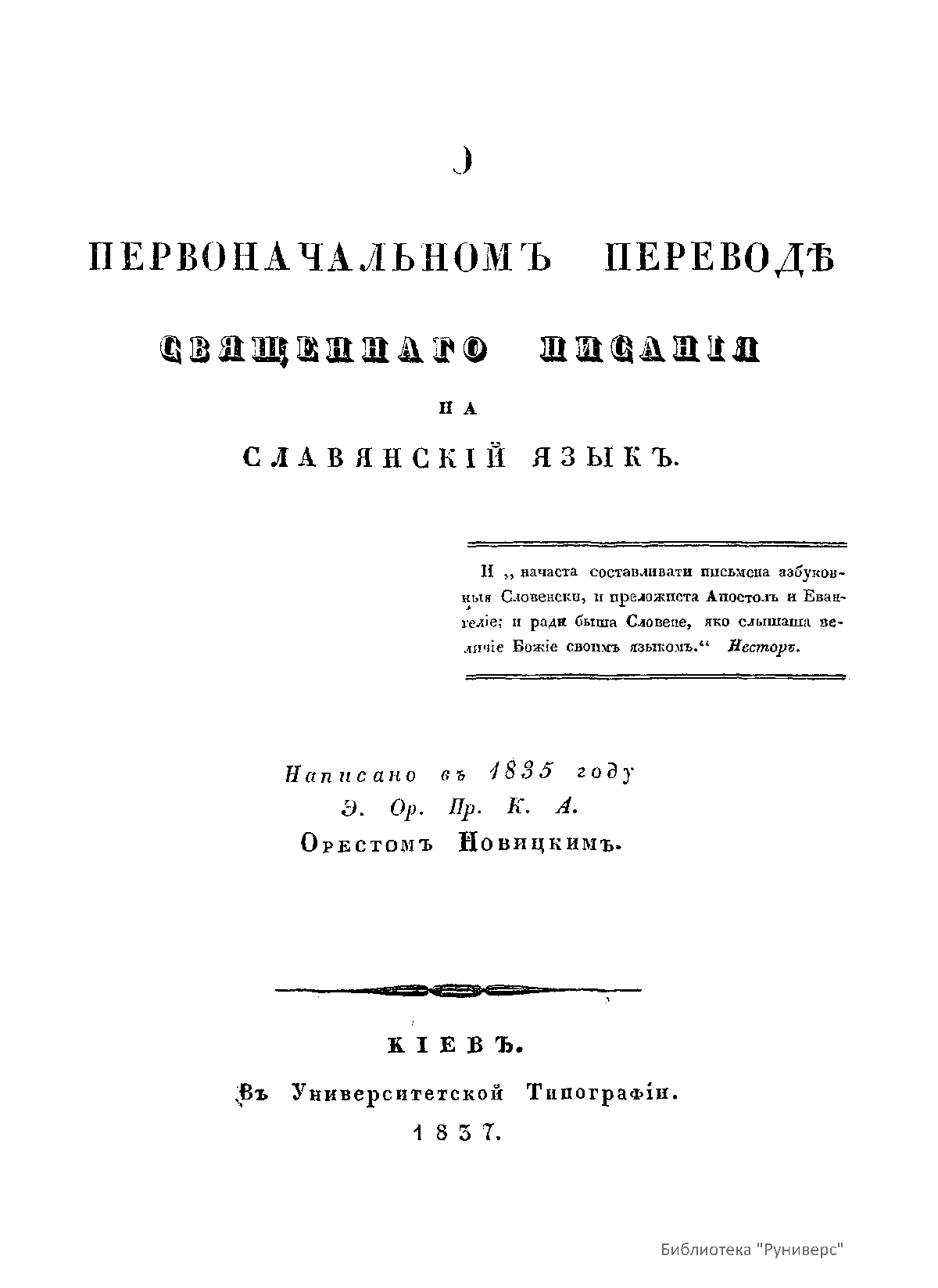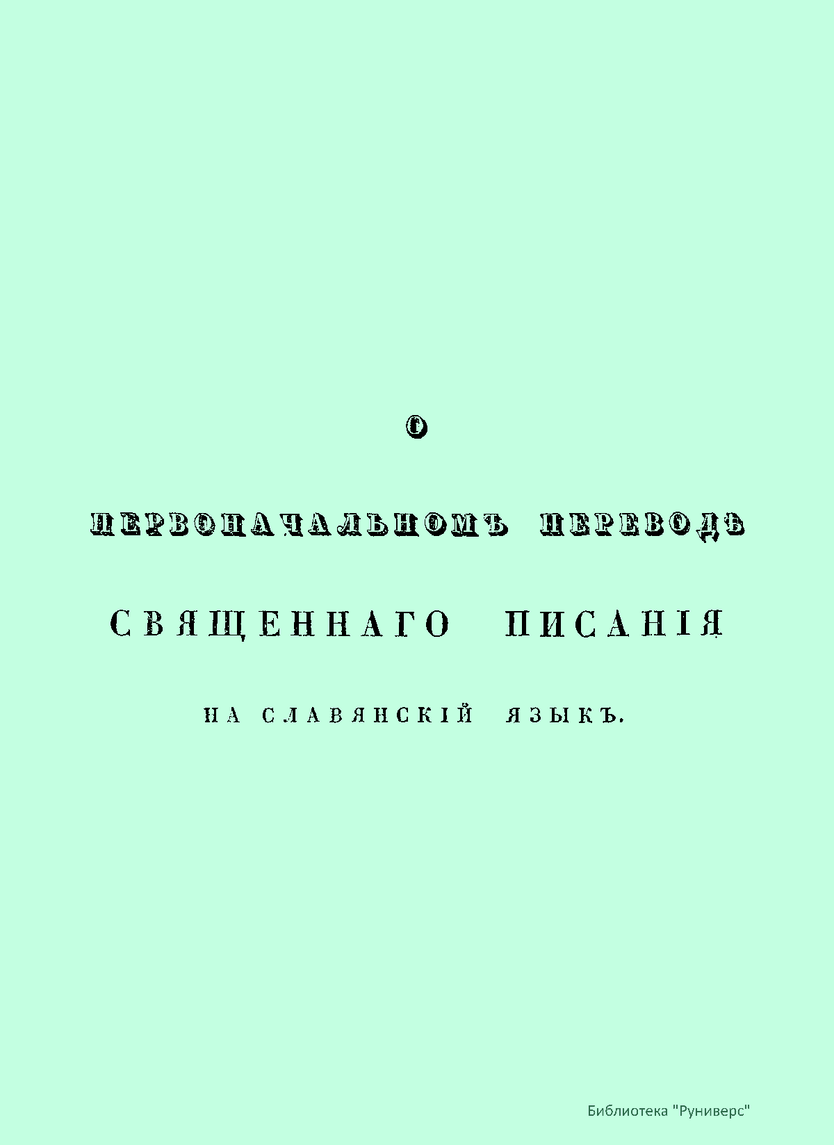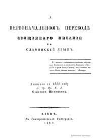 О первоначальномъ переводѣ священнаго писанiя на славянскiй языкъ