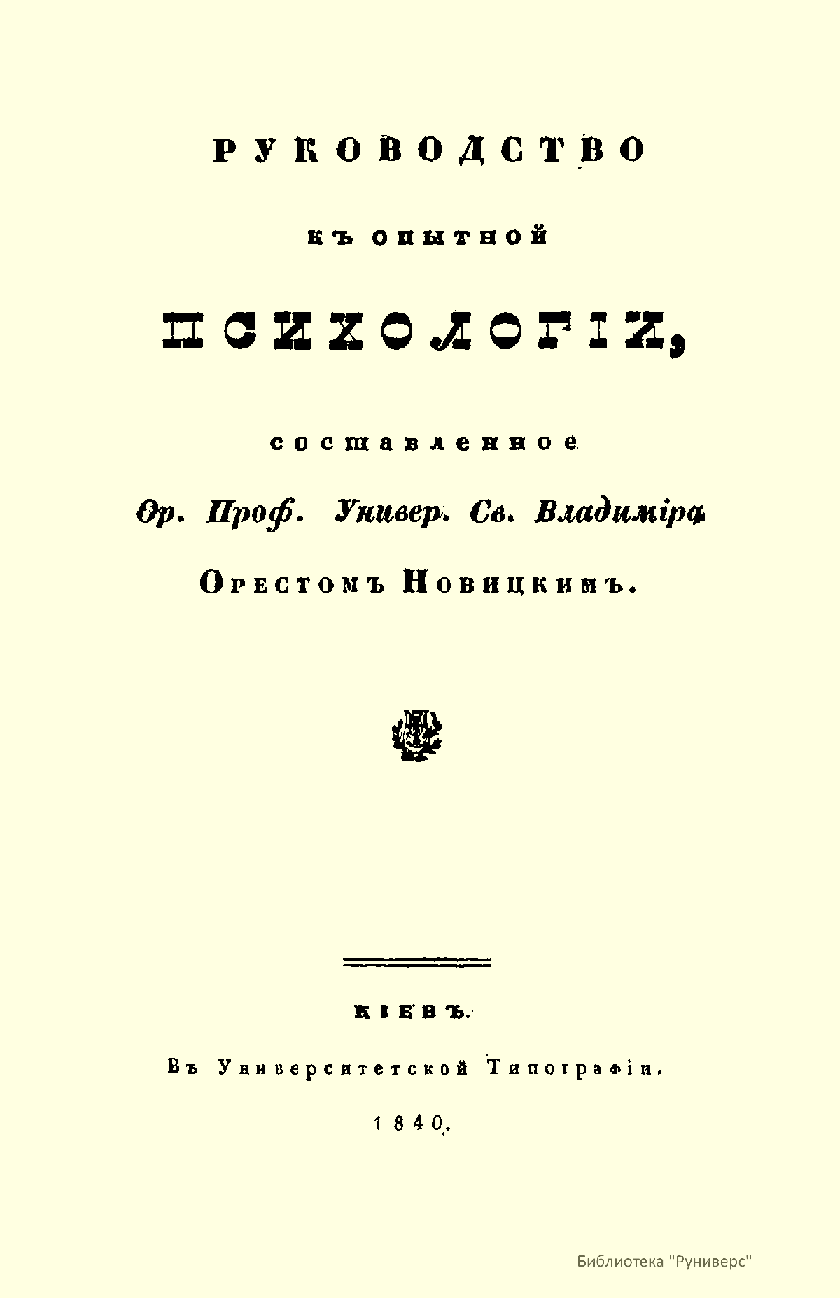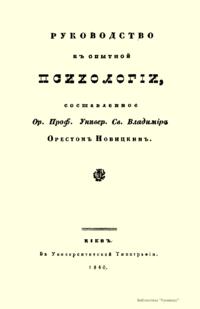 «Руководство к опытной психологии» составлен по учебнику базельского профессора Фридриха-Теодора Фишера (Friedrich-Theodor Visher, 1807—1888) и только глава о разуме принадлежит самому Новицкому.
