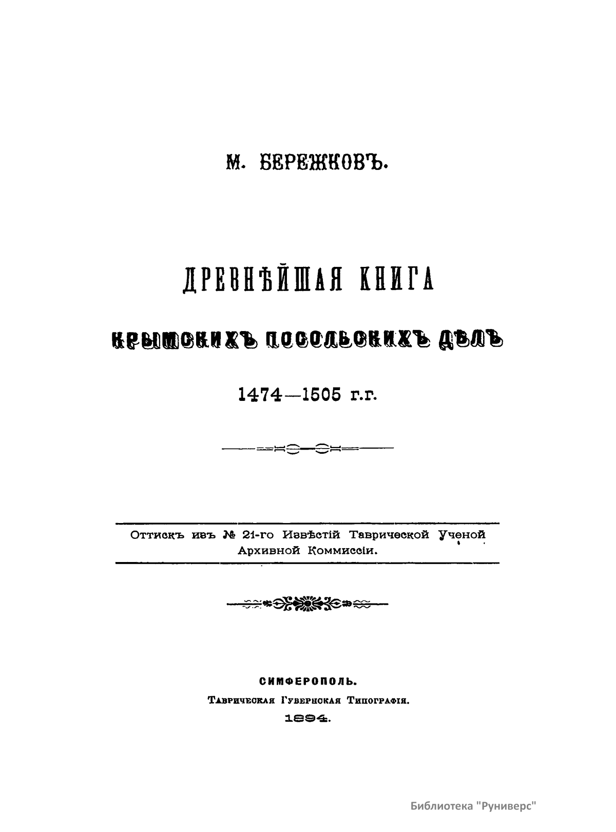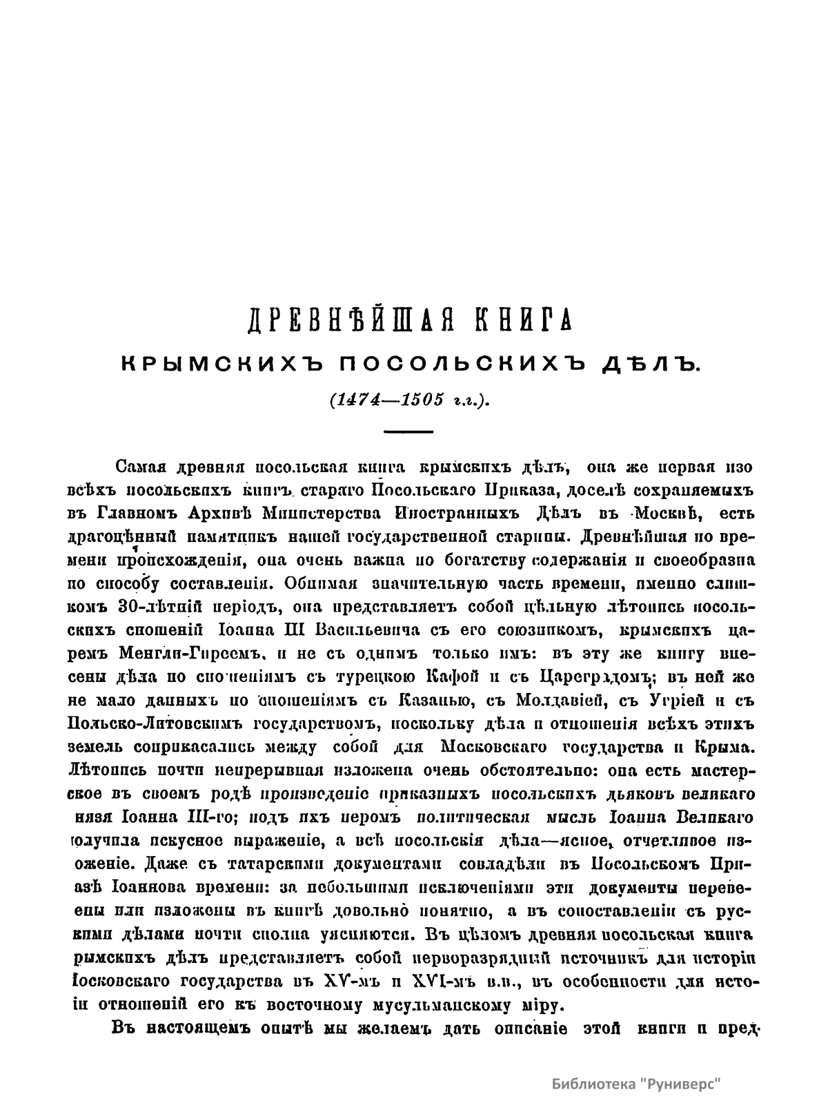 Древнѣйшая книга крымскихъ посольскихъ дѣлъ 1474-1505 г.г.