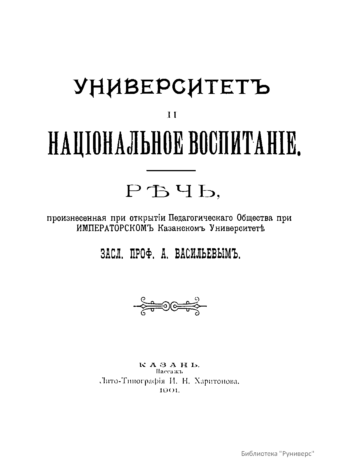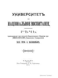 Университетъ и нацiональное воспитанiе. Рѣчь, произнесенная при открытiи Педагогическаго Общества при Императорскомъ Казанскомъ Университетѣ