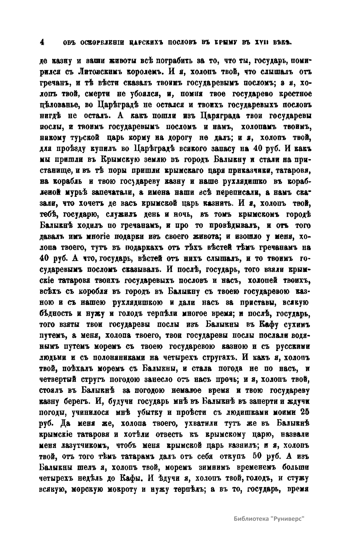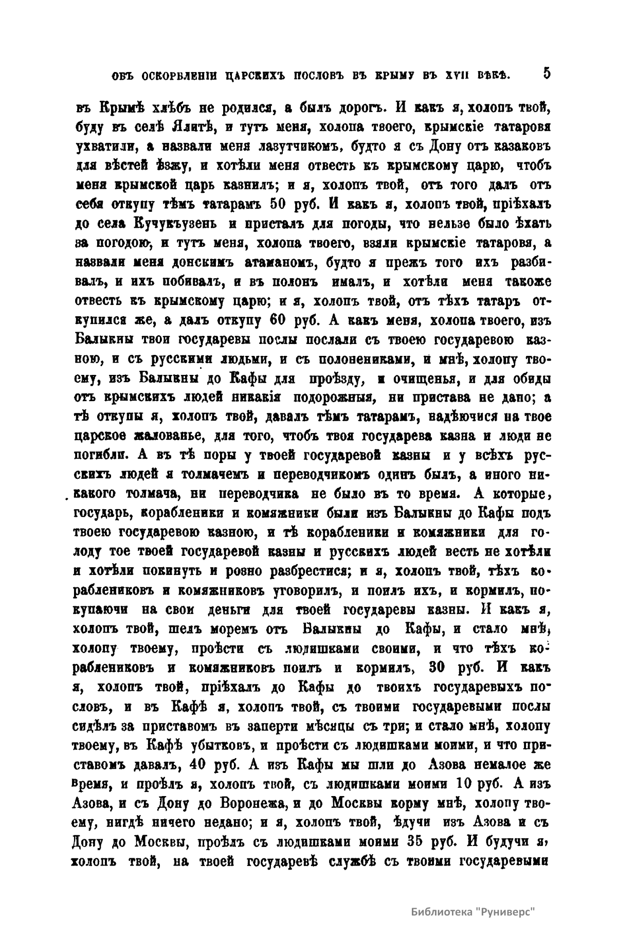 Объ оскорбленiи царскихъ пословъ въ Крыму въ XVII вѣкѣ