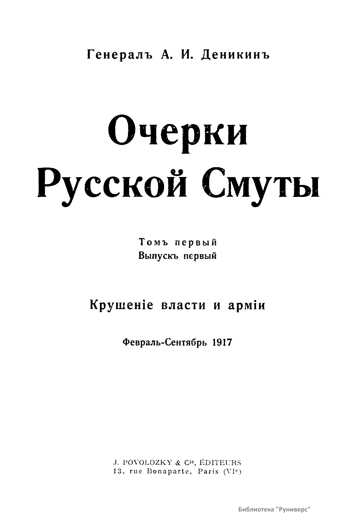 Очерки Русской смуты. Томъ первый. Выпускъ первый. Крушенiе власти и армiи. Февраль-Сентябрь 1917