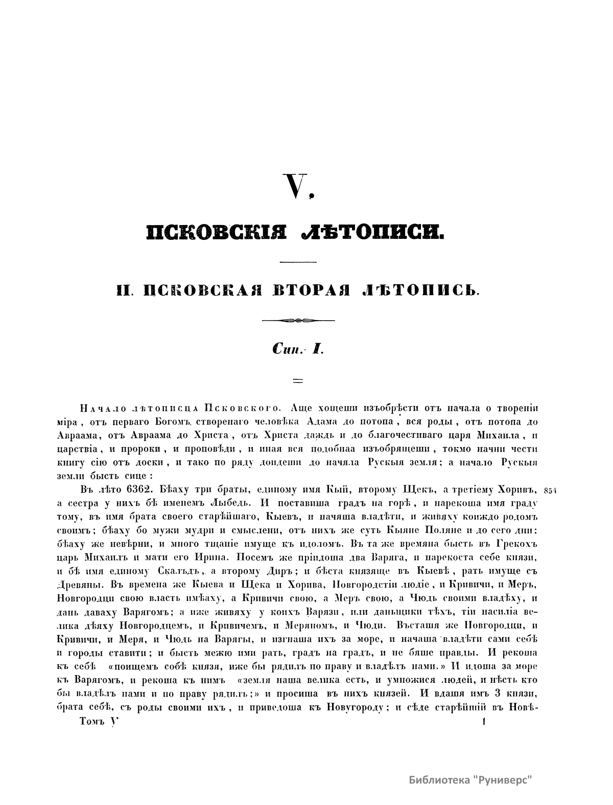 Полное собранiе русскихъ лѣтописей. Томъ пятый. V. VI. Псковкiя и Софийскiя лѣтописи