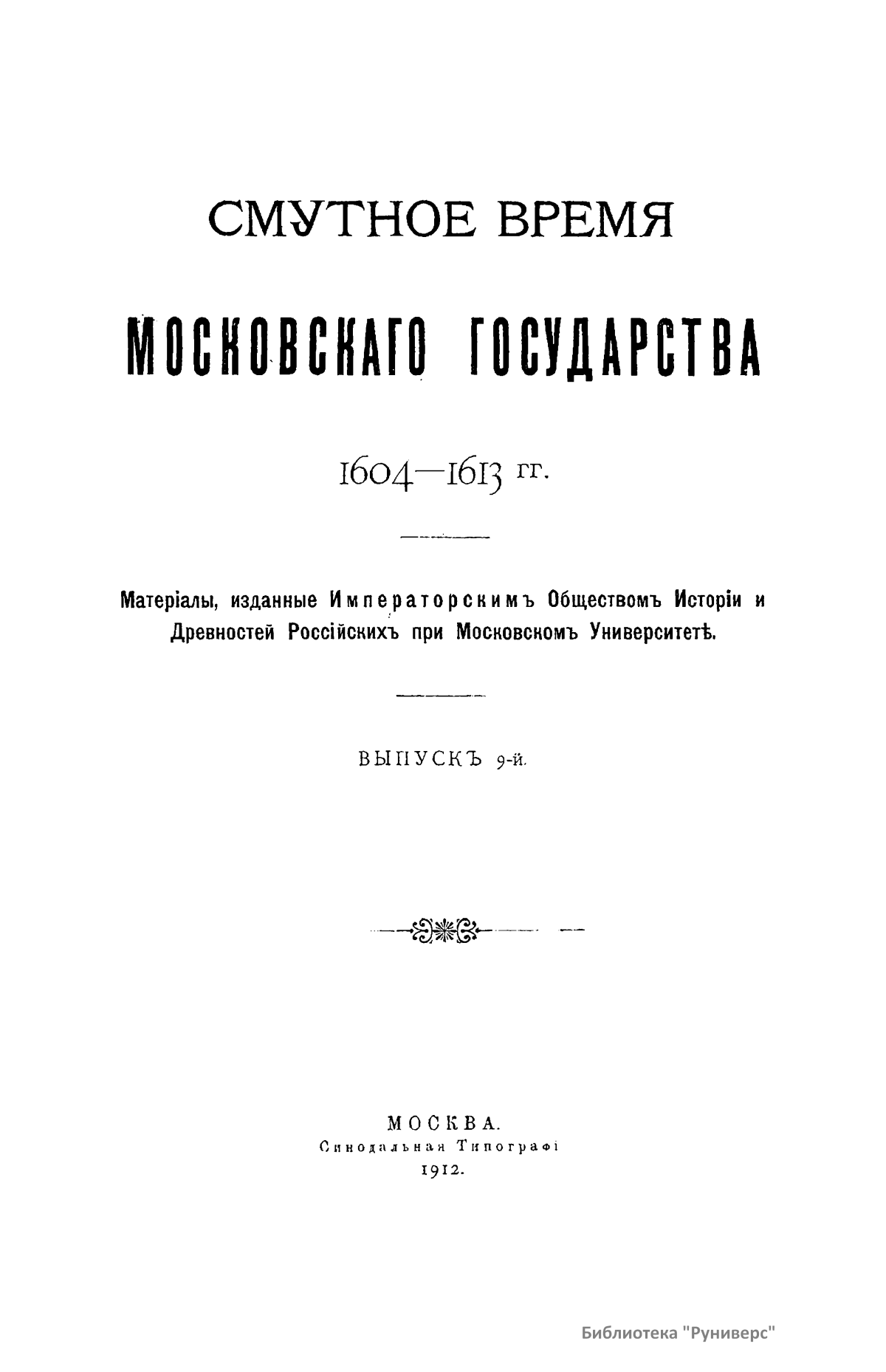 Смутное время московского государства. 1604-1613 гг. Выпуск 9-й