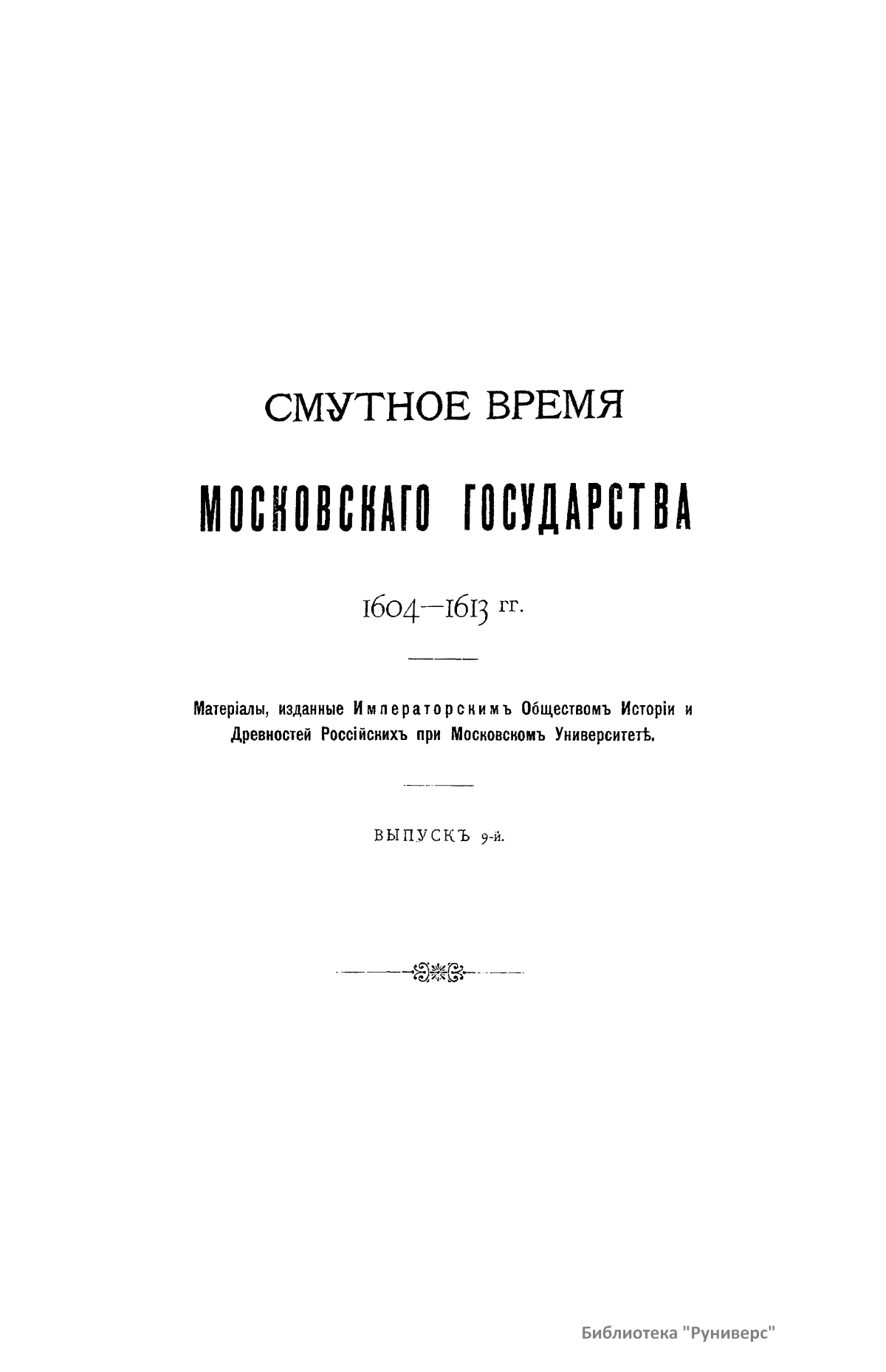 Смутное время московскаго государства. 1604-1613 гг. Выпускъ 9-й