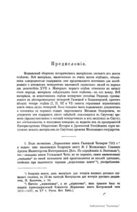 Третий выпуск материалов, изданных Императорским обществом истории и древностей российских при Московском университете. Включает документы Московского главного архива министерства иностранных дел, относящиеся ко времени междуцарствия, а также несколько позднейших дел о Ф. Андронове, в которых можно найти ряд ценных указаний о событиях Смутного времени. Перечень опубликованных Актов Московского государства и Актов Польского государства находится в конце издания. В четвертом выпуске опубликованы Арзамасские поместные акты 1578 – 1618 гг. По ним можно проследить, как вотчинное землевладение, ничтожное в Арзамасском уезде до Василия Шуйского, значительно возрастает во время Смуты, особенно во время правления бояр соединенного ополчения. Первые годы царствования Михаила Федоровича представляют в истории служилого землевладения не меньший интерес. Для государства это время ликвидации Смуты и путаницы, внесенной в землевладение, а для служилых людей это время упрочения за собой захваченных правдами и неправдами во время распада государственной власти выгод. В пятом выпуске опубликованы акты подмосковных ополчений и земского собора 1611 – 1613 гг. Девятый посвящен четвертчикам Смутного времени 1604 – 1617 гг. Опубликованные материалы представляют источник для исследования о денежном четвертном жалованье служилых людей в первые два десятилетия семнадцатого века.
