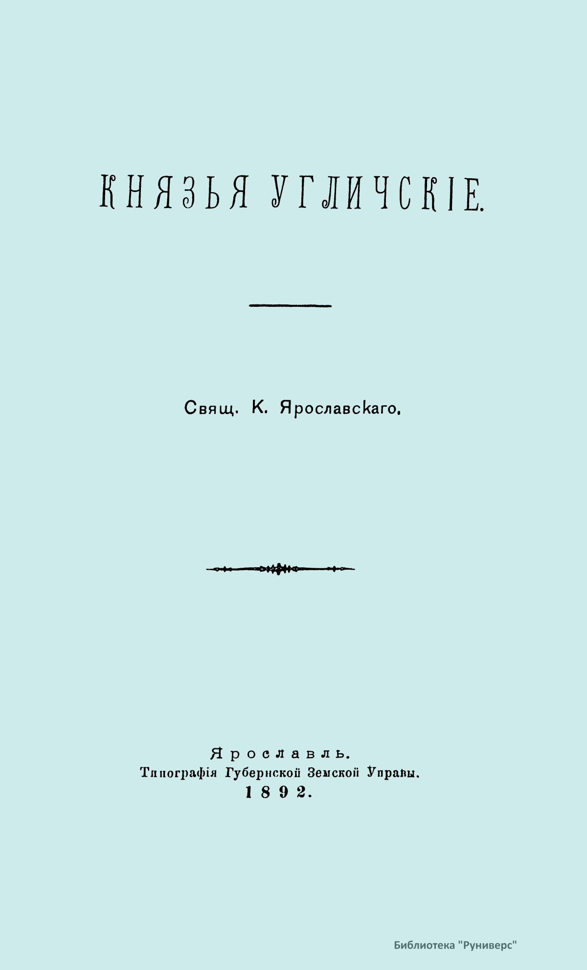 Брошюра содержит сведения об углических владетельных князьях из рода Великих князей владимирских; об углических владетельных князьях из рода Великих князей московских.