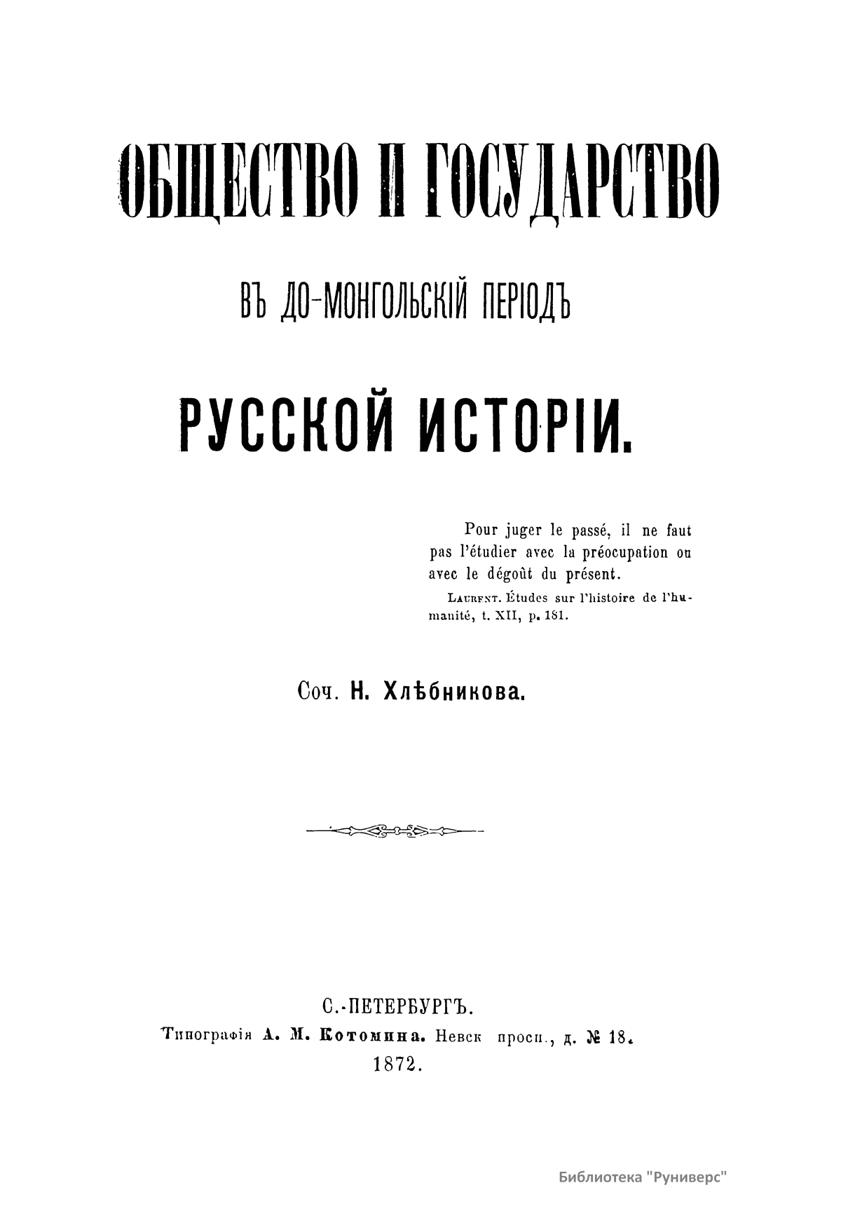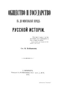 Общество и государство въ до-монгольскiй перiодъ русской исторiи
