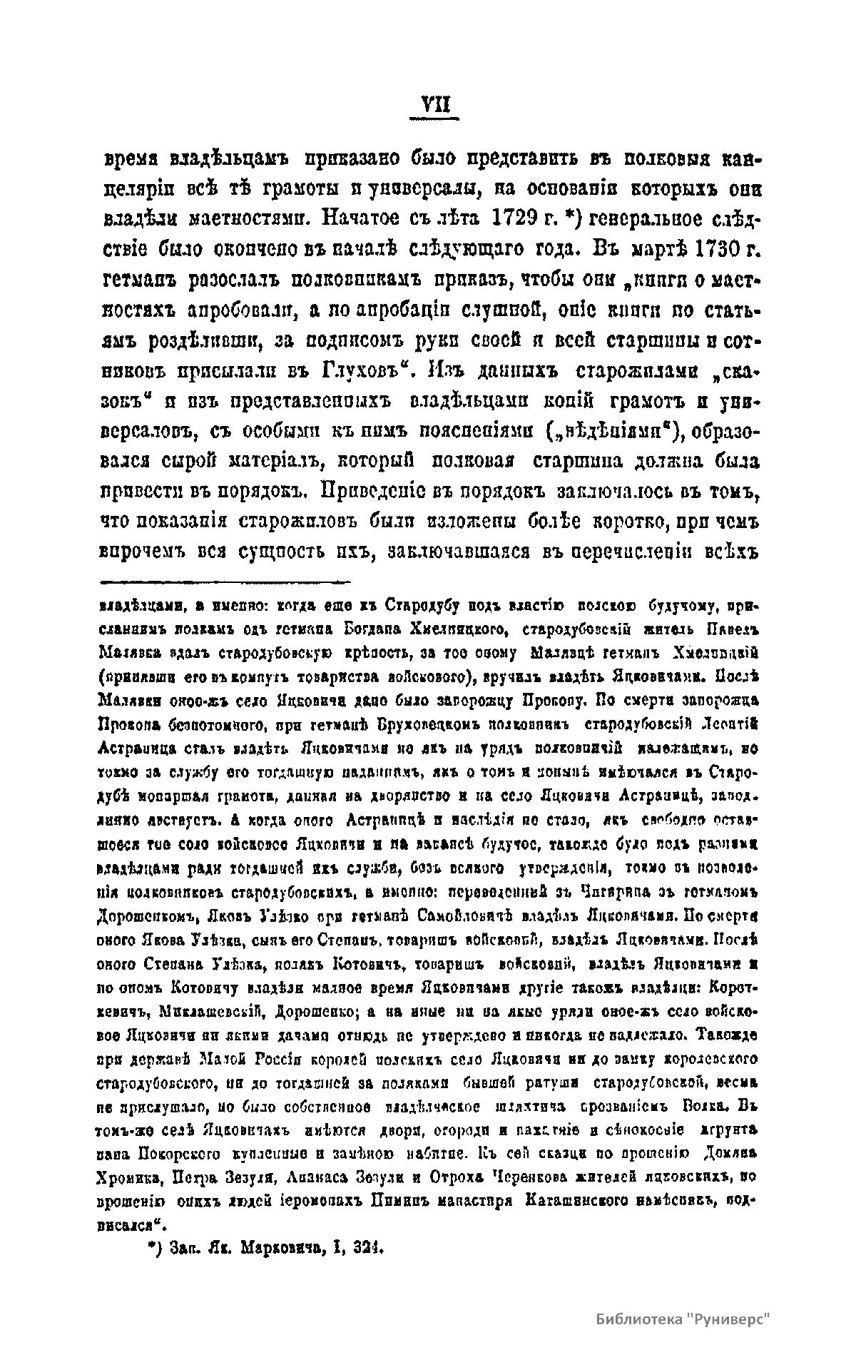 Описанiе старой Малороссiи. Матерiалы для исторiи заселенiя, землевладѣнiя и управленiя